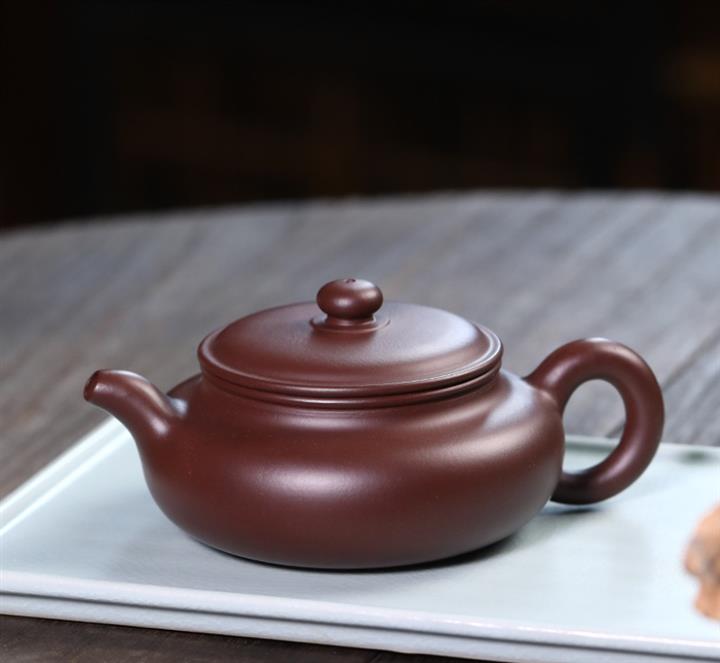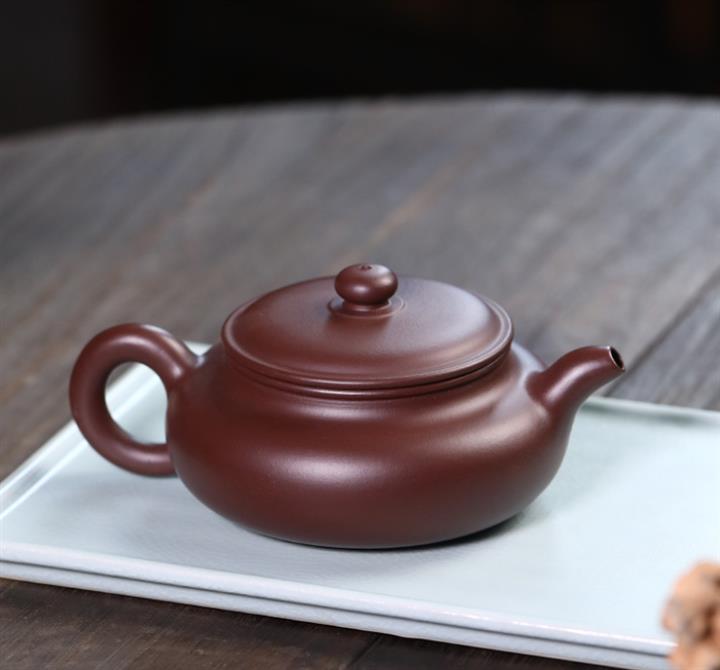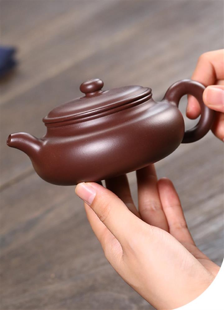 220cc原礦紫朱泥扁腹泡茶壺POT9223