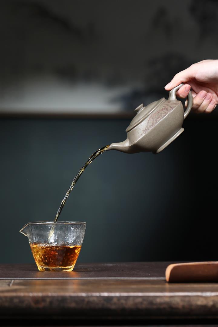 【泥料特點】砂土氣重,似淳實農民,日久使用,漸露鋒芒,養成變化,溫潤莊重。紫砂是壹種雙重氣孔結構的多孔性材質,氣孔微細,密度高。用紫砂壺沏茶,不失原味,且香不渙散,得茶之真香真味。紫砂使用越久,壺身色澤越發光亮照人,氣韻溫雅。紫砂壺長久使用器身會因撫摸擦拭,變得越發溫潤光澤。