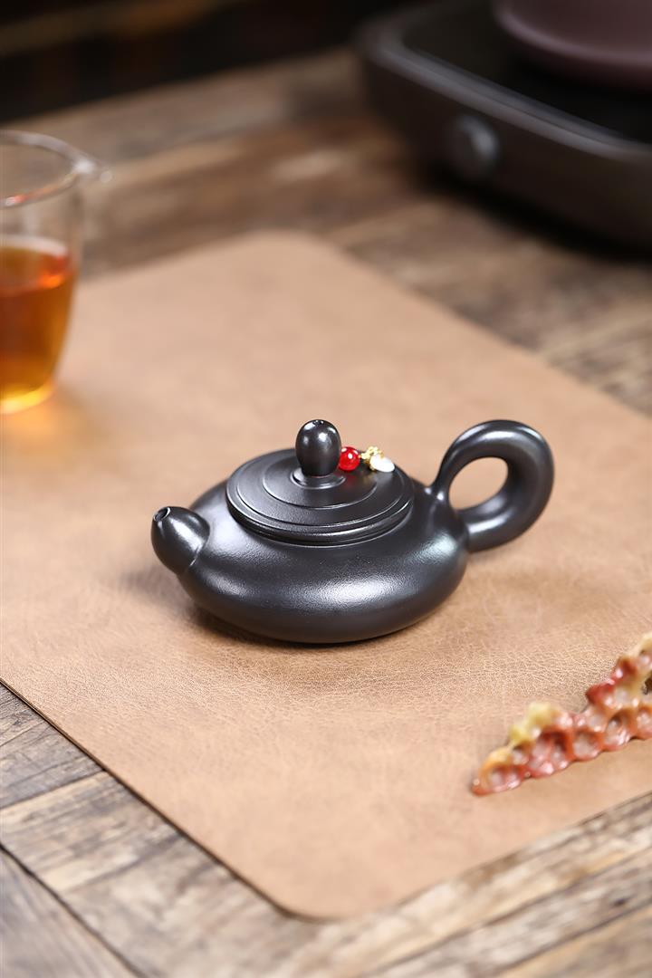 180cc原礦玄鐵石黃道洪扁燈茶壺POT9277