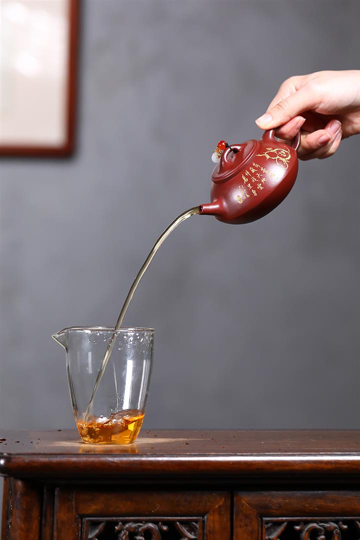 【泥料特點】砂土氣重,似淳實農民,日久使用,漸露鋒芒,養成變化,溫潤莊重。紫砂是壹種雙重氣孔結構的多孔性材質,氣孔微細,密度高。用紫砂壺沏茶,不失原味,且香不渙散,得茶之真香真味。紫砂使用越久,壺身色澤越發光亮照人,氣韻溫雅。紫砂壺長久使用器身會因撫摸擦拭,變得越發溫潤光澤。