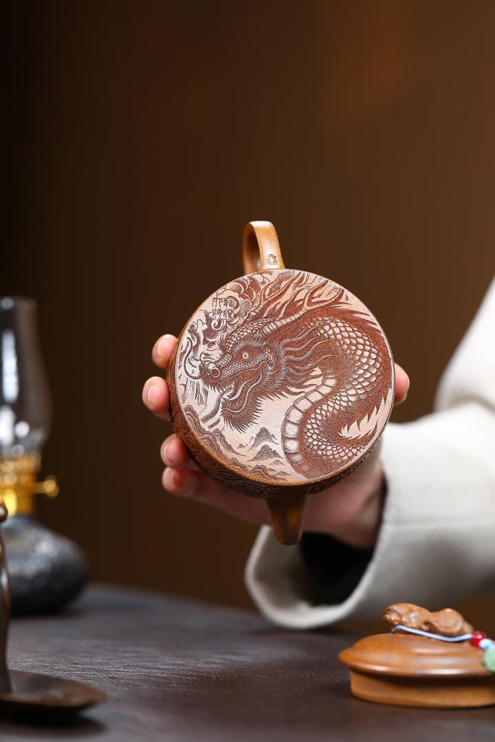 300cc原礦紫泥古法貝殼燒蒼龍出海茶壺POT8834