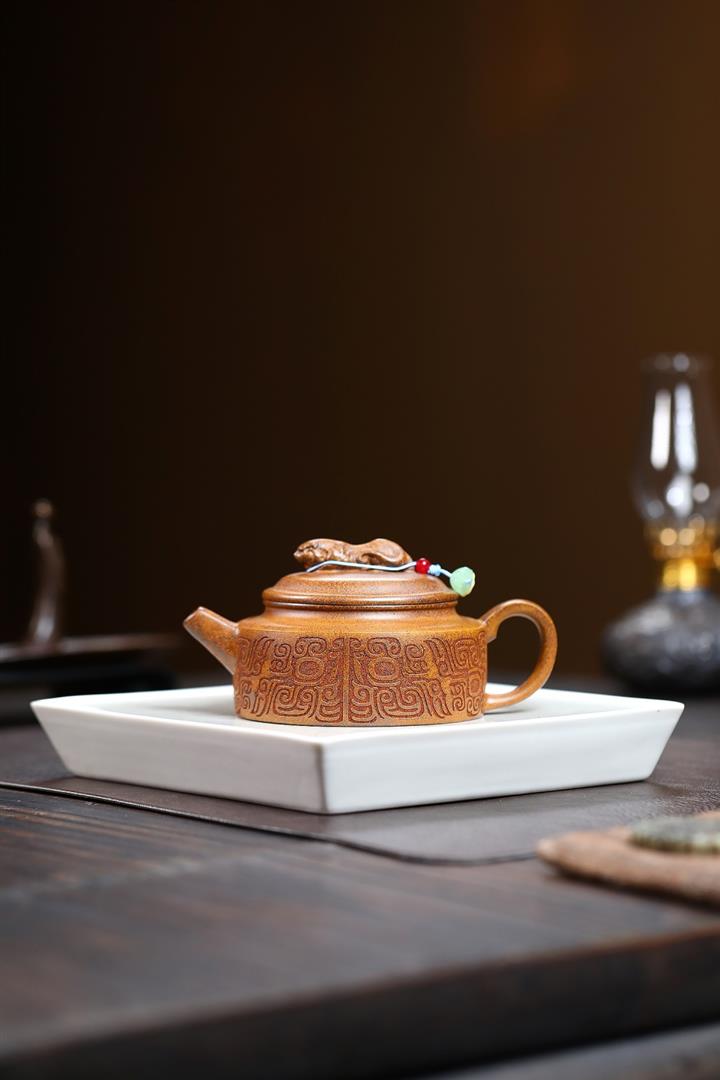【作品介紹】此款壺形線條流暢,壺把,壺嘴,壺身壹氣呵成栩栩如生,是收藏把玩的好壺,泥料色澤古樸典雅,日久使用,漸露鋒芒,養成變化快,溫潤莊重,用其泡茶,使用的年代久,壺身就溫潤,泡出來的茶湯也就醇郁芳馨。