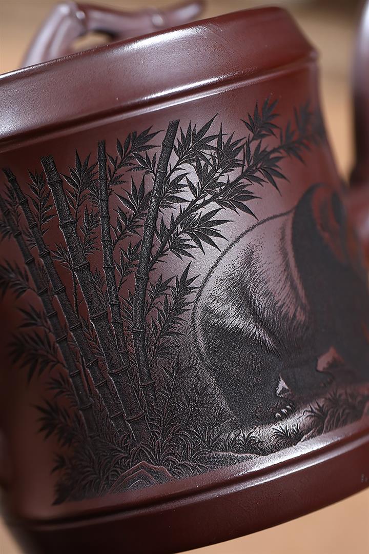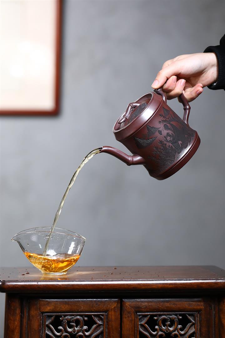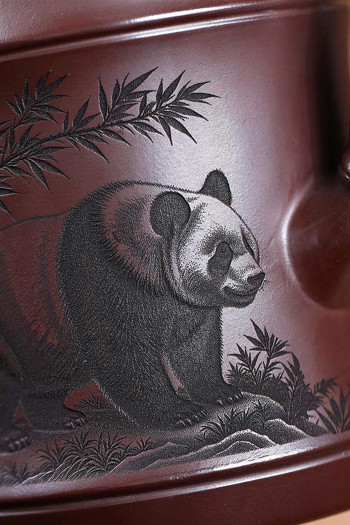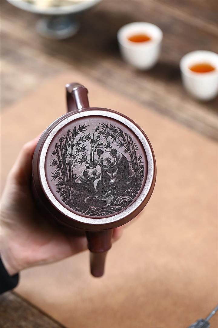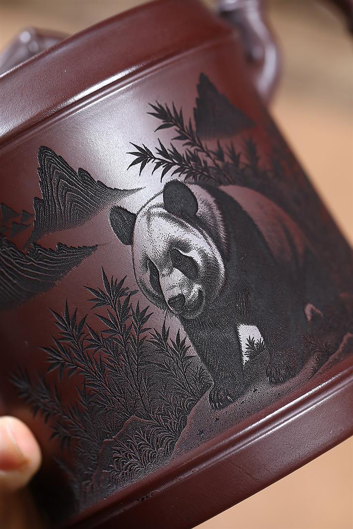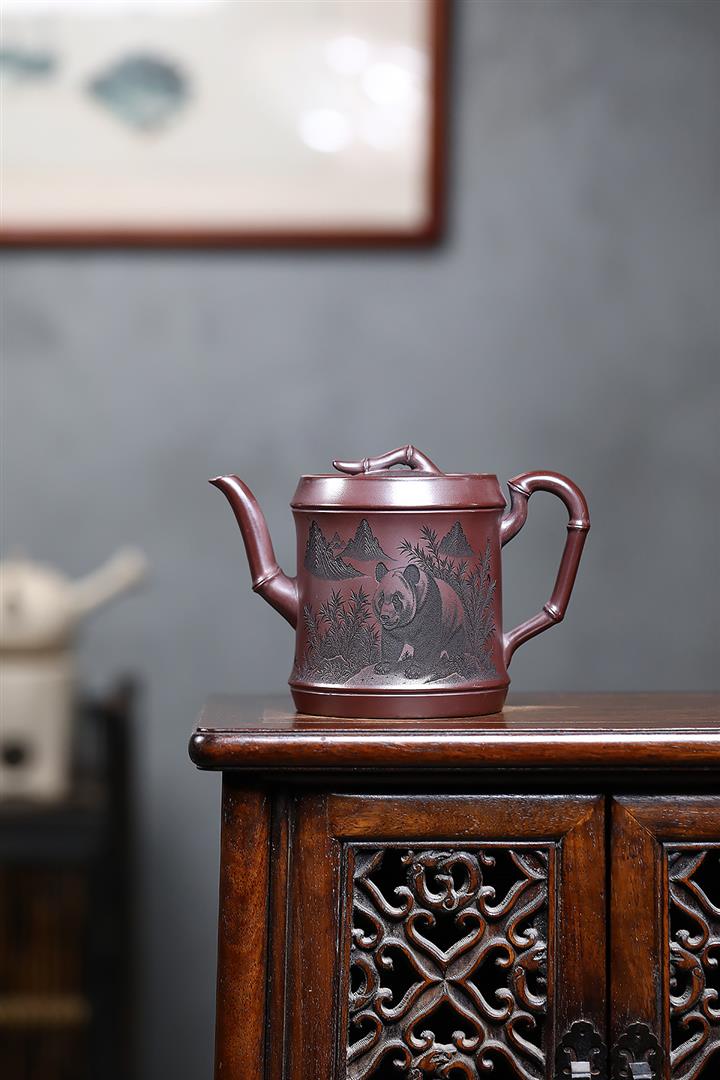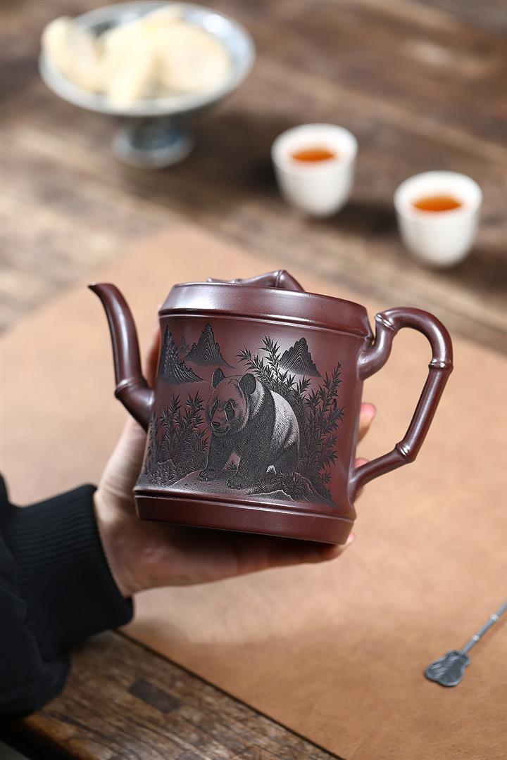 650cc原礦石紅熊貓圓竹泡茶壺POT9305