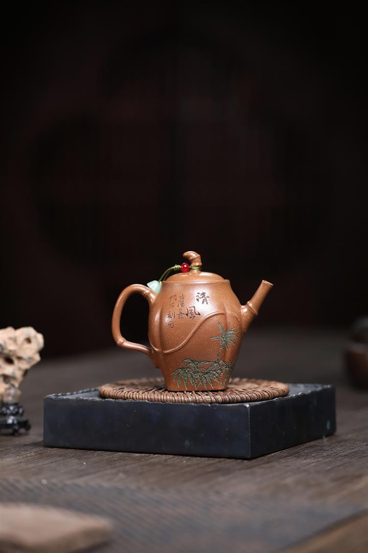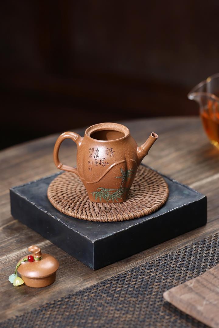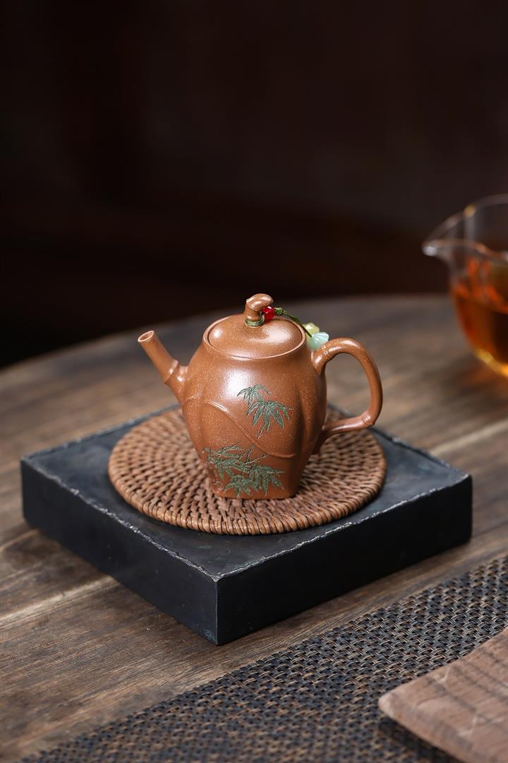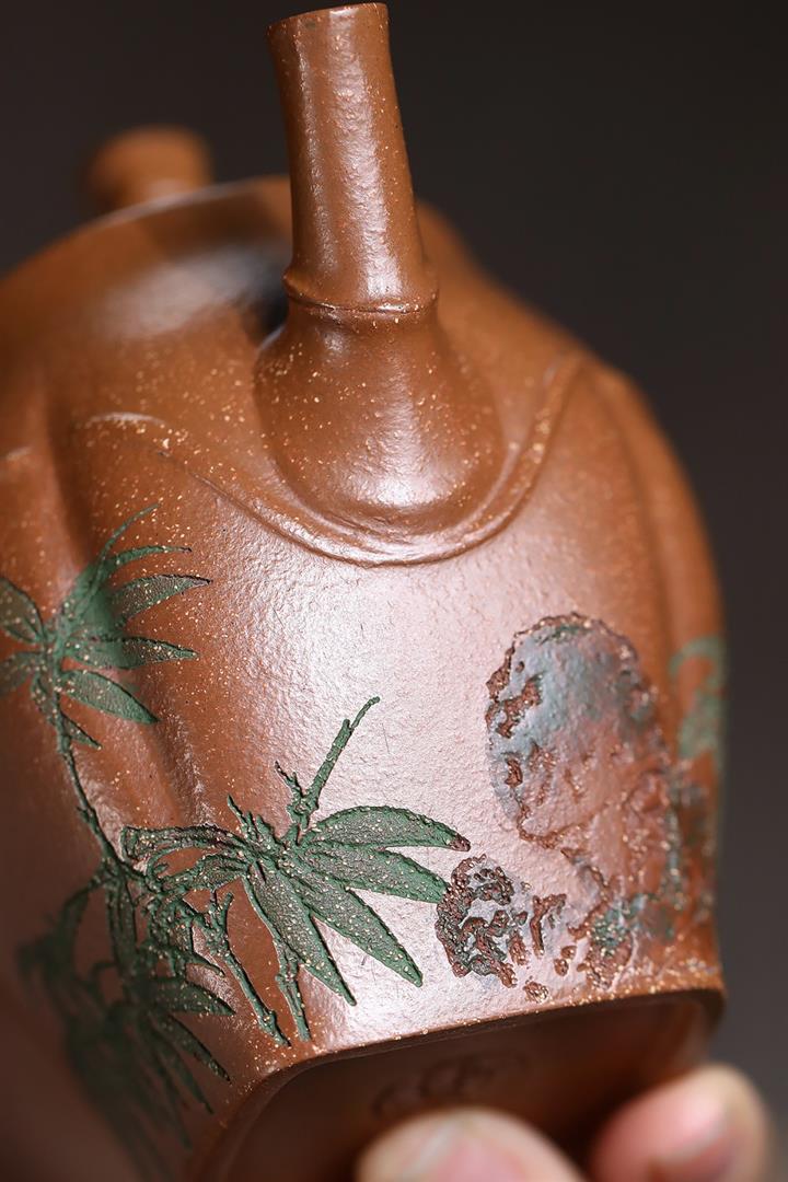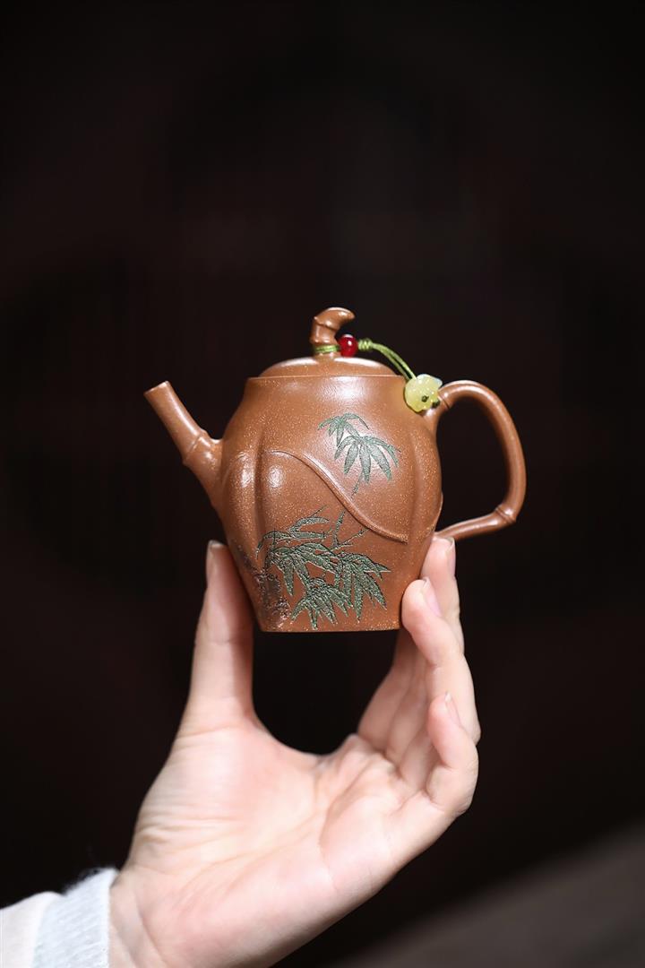 【作品介紹】此款壺形線條流暢,壺把,壺嘴,壺身壹氣呵成栩栩如生,是收藏把玩的好壺,泥料色澤古樸典雅,日久使用,漸露鋒芒,養成變化快,溫潤莊重,用其泡茶,使用的年代久,壺身就溫潤,泡出來的茶湯也就醇郁芳馨。