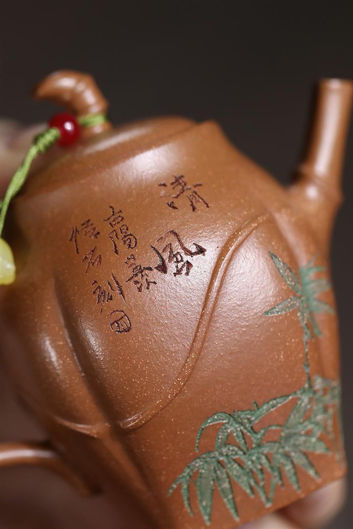 原礦紫泥山水四方壺POT4372