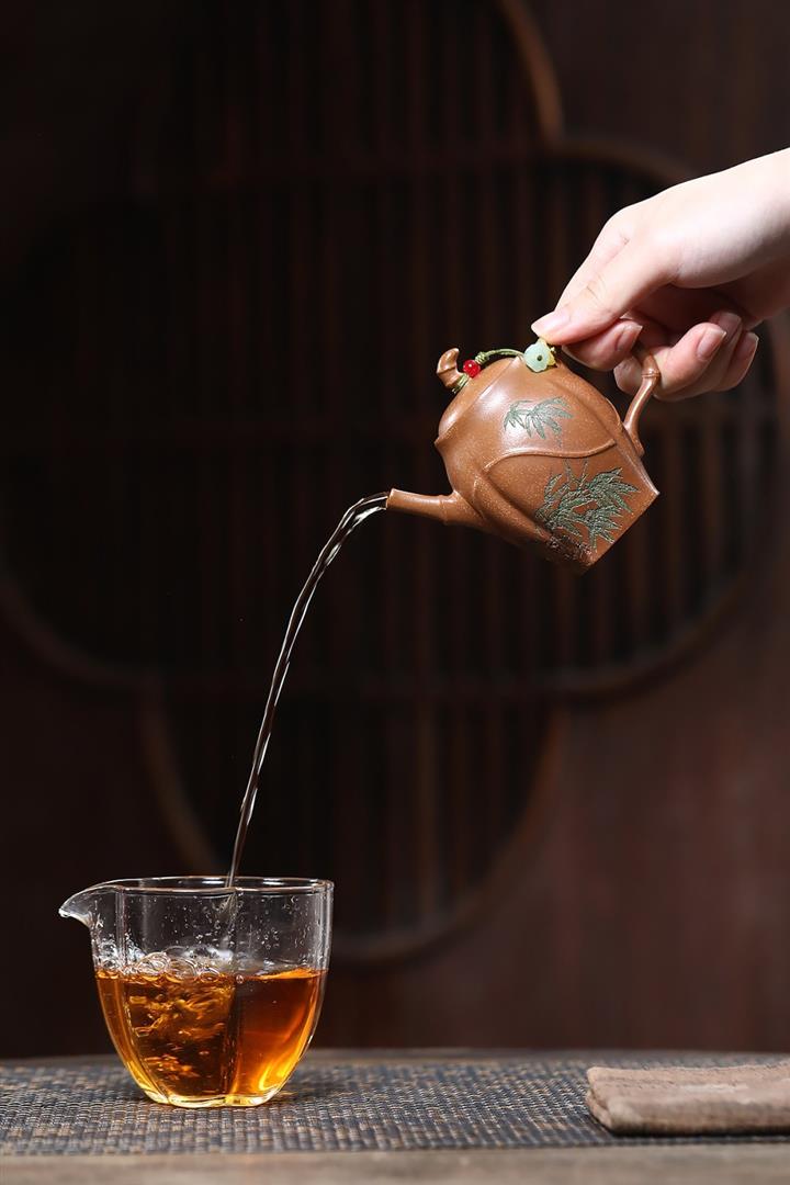 【泥料特點】砂土氣重,似淳實農民,日久使用,漸露鋒芒,養成變化,溫潤莊重。紫砂是壹種雙重氣孔結構的多孔性材質,氣孔微細,密度高。用紫砂壺沏茶,不失原味,且香不渙散,得茶之真香真味。紫砂使用越久,壺身色澤越發光亮照人,氣韻溫雅。紫砂壺長久使用器身會因撫摸擦拭,變得越發溫潤光澤。