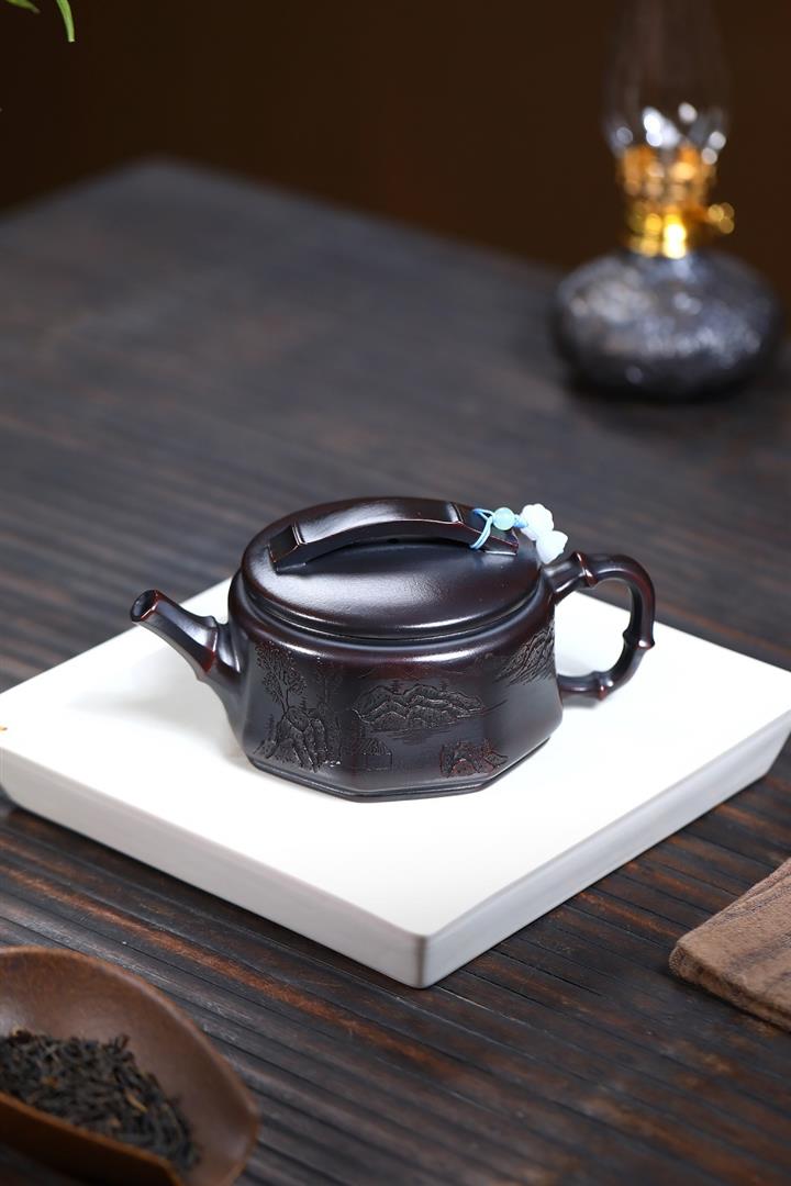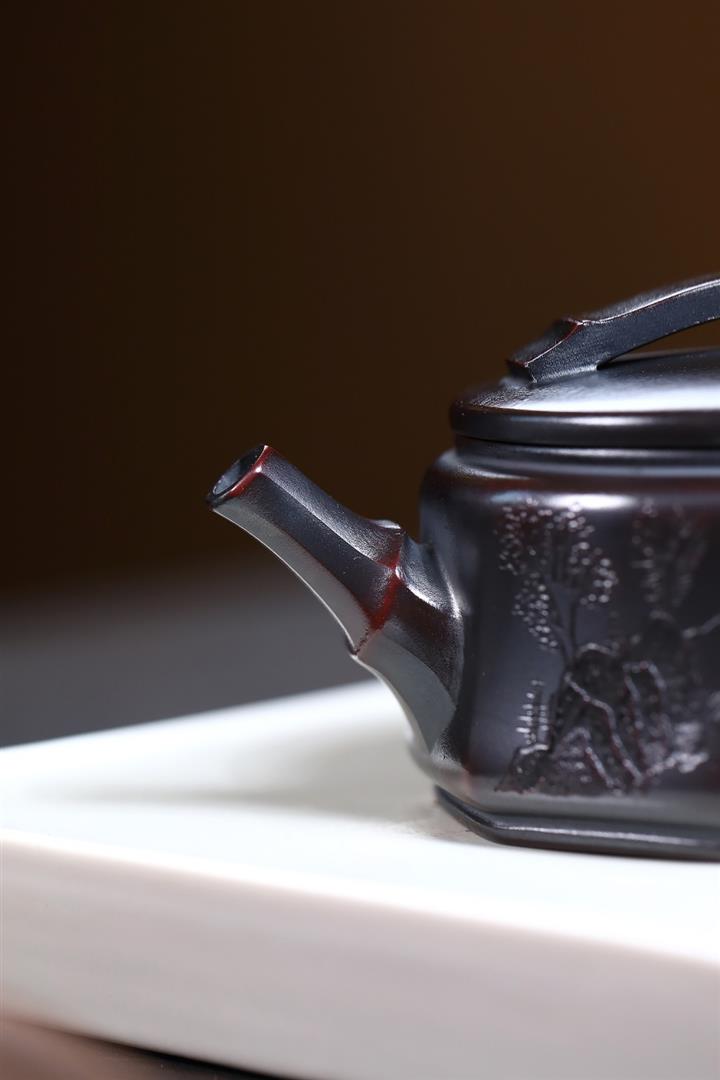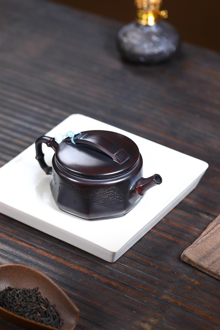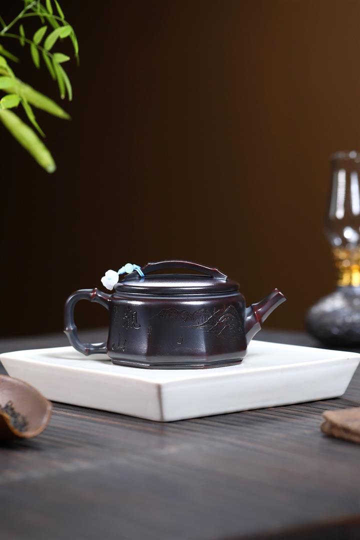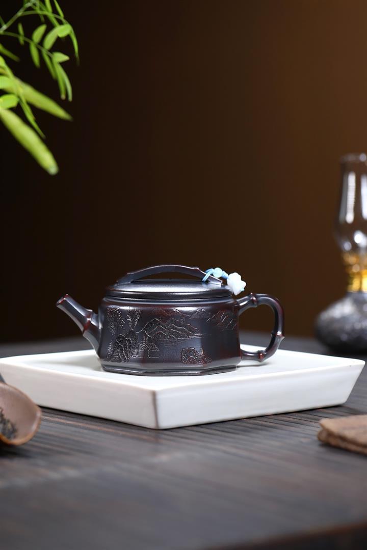 六方宮燈原礦龍骨金砂手刻紫砂壺工堂pot3868