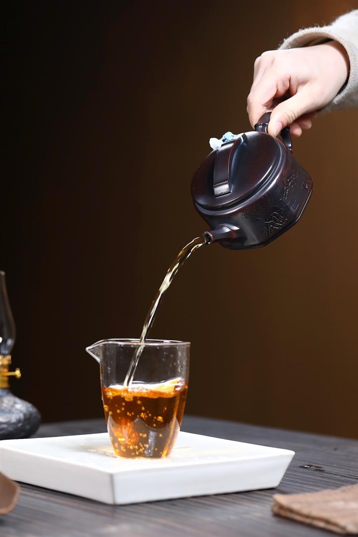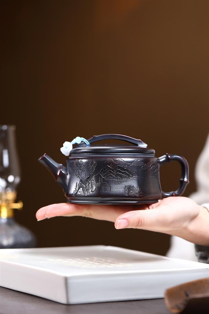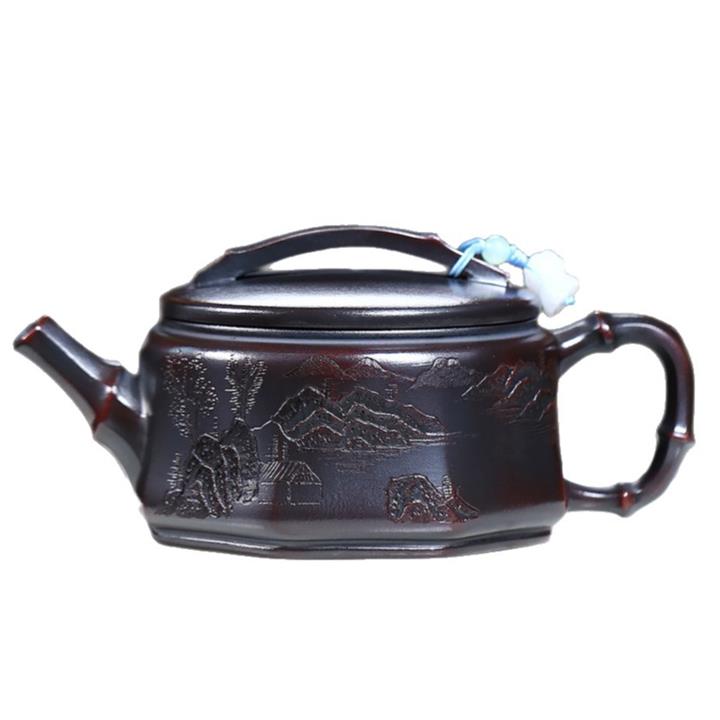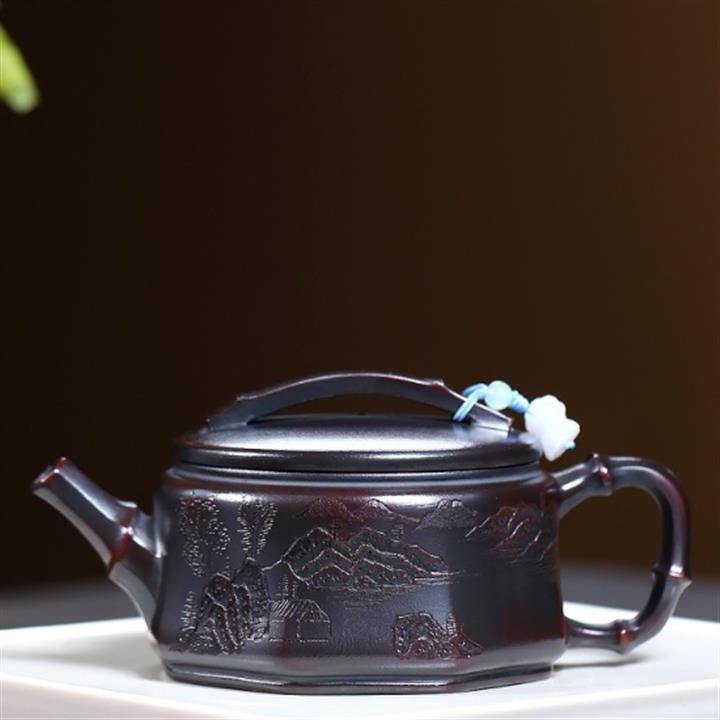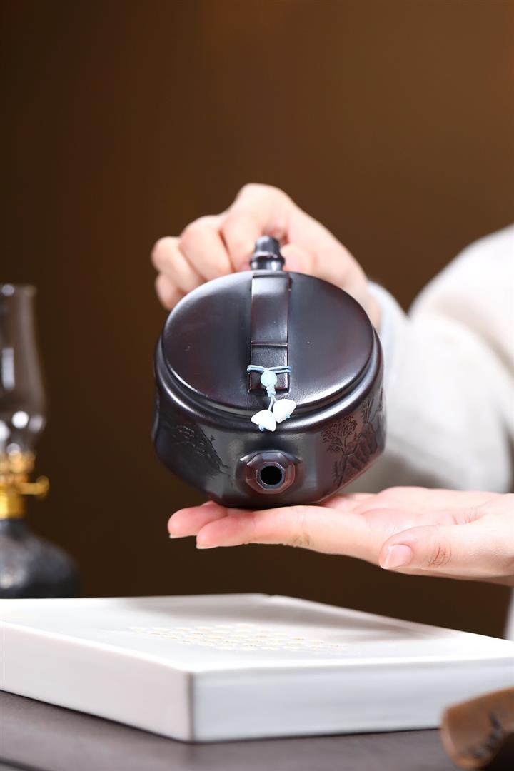 六方宮燈原礦龍骨金砂手刻紫砂壺工堂pot3868
