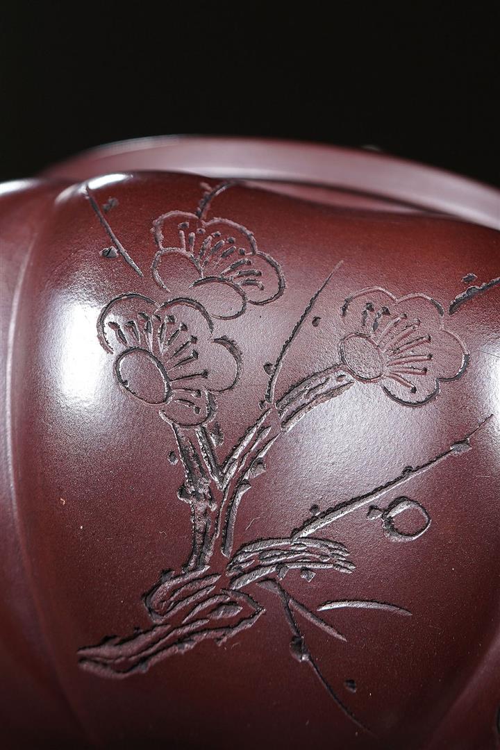 【泥料特點】砂土氣重,似淳實農民,日久使用,漸露鋒芒,養成變化,溫潤莊重。紫砂是壹種雙重氣孔結構的多孔性材質,氣孔微細,密度高。用紫砂壺沏茶,不失原味,且香不渙散,得茶之真香真味。紫砂使用越久,壺身色澤越發光亮照人,氣韻溫雅。紫砂壺長久使用器身會因撫摸擦拭,變得越發溫潤光澤。