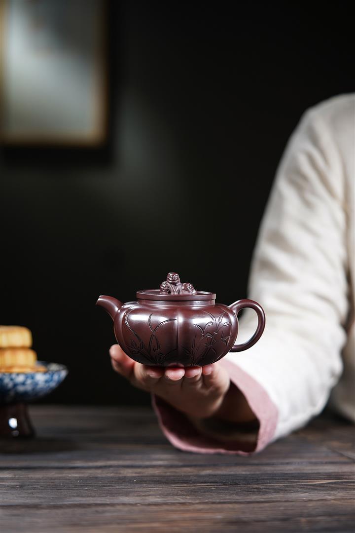 【作品介紹】此款壺形線條流暢,壺把,壺嘴,壺身壹氣呵成栩栩如生,是收藏把玩的好壺,泥料色澤古樸典雅,日久使用,漸露鋒芒,養成變化快,溫潤莊重,用其泡茶,使用的年代久,壺身就溫潤,泡出來的茶湯也就醇郁芳馨。