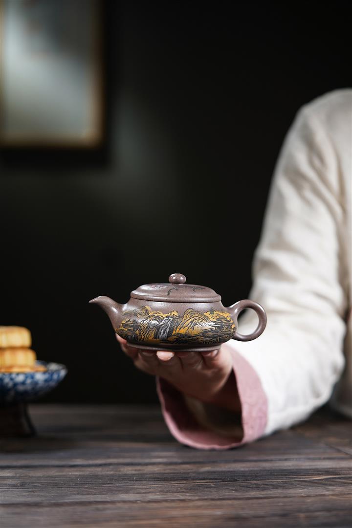 【作品介紹】此款壺形線條流暢,壺把,壺嘴,壺身壹氣呵成栩栩如生,是收藏把玩的好壺,泥料色澤古樸典雅,日久使用,漸露鋒芒,養成變化快,溫潤莊重,用其泡茶,使用的年代久,壺身就溫潤,泡出來的茶湯也就醇郁芳馨。