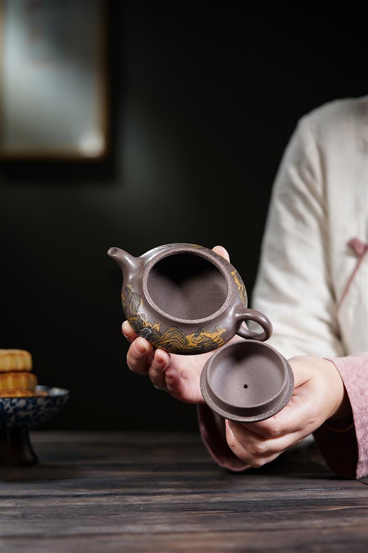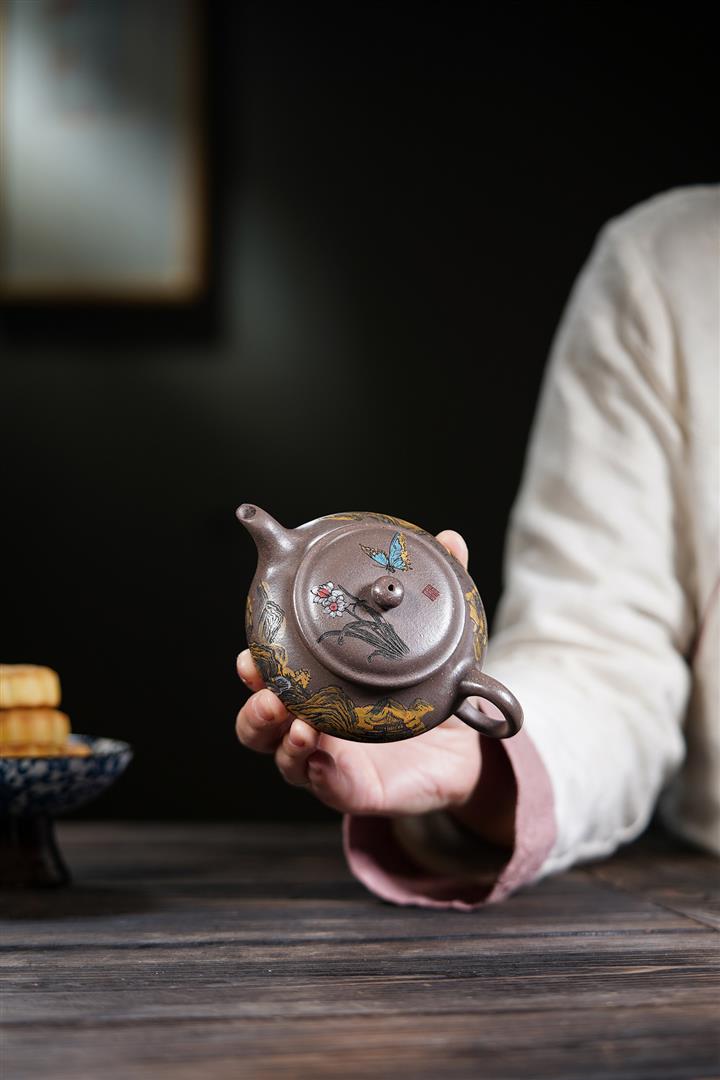 【泥料特點】砂土氣重,似淳實農民,日久使用,漸露鋒芒,養成變化,溫潤莊重。紫砂是壹種雙重氣孔結構的多孔性材質,氣孔微細,密度高。用紫砂壺沏茶,不失原味,且香不渙散,得茶之真香真味。紫砂使用越久,壺身色澤越發光亮照人,氣韻溫雅。紫砂壺長久使用器身會因撫摸擦拭,變得越發溫潤光澤。