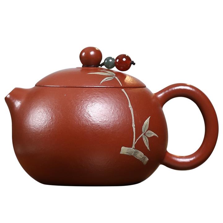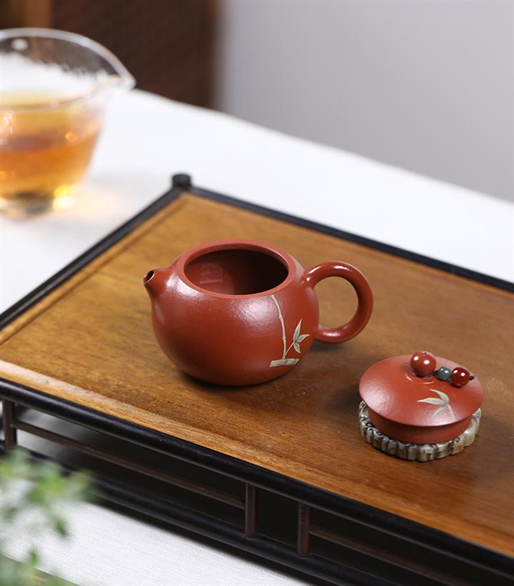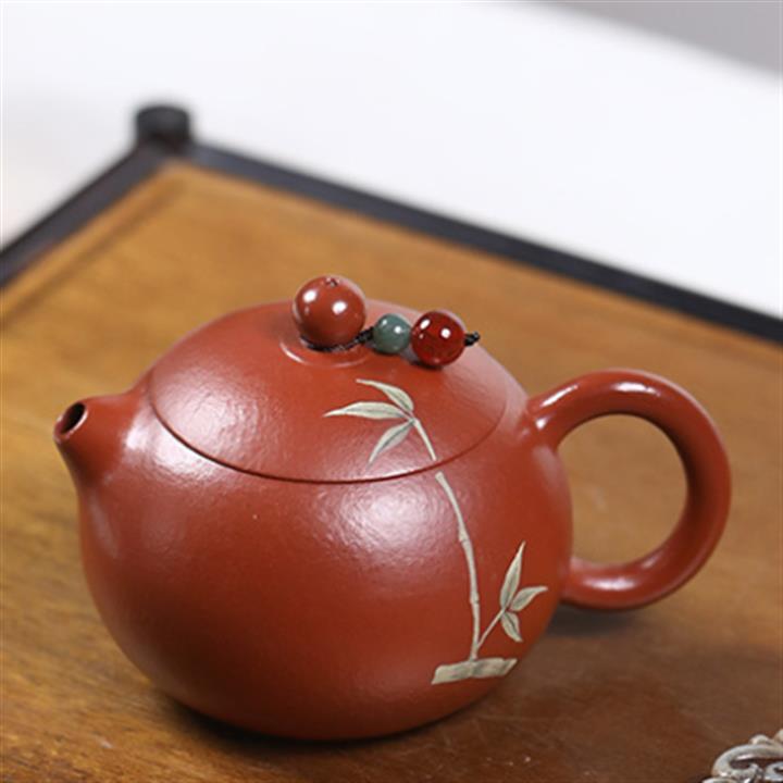 120cc原礦朱泥小西施泥繪青竹泡茶壺POT9344