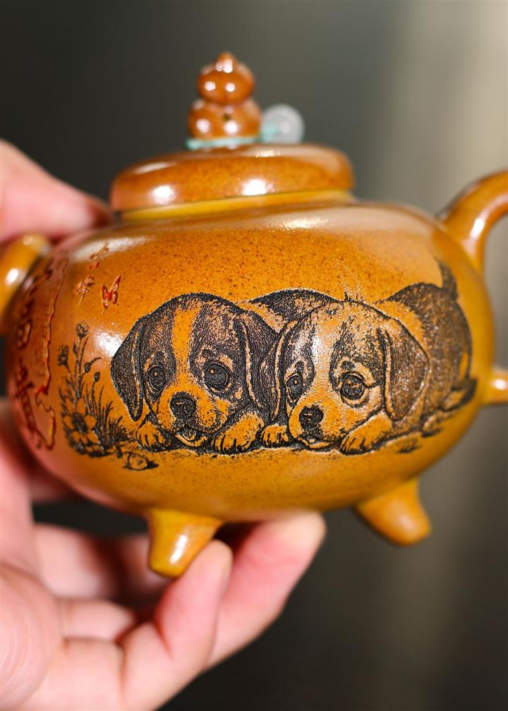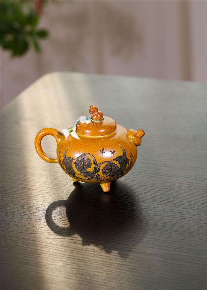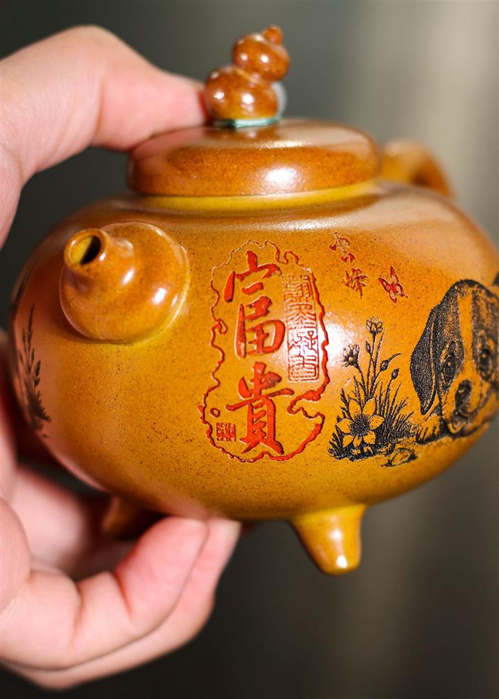 250cc原礦黃金段泥茍富貴葫蘆泡茶壺POT9360