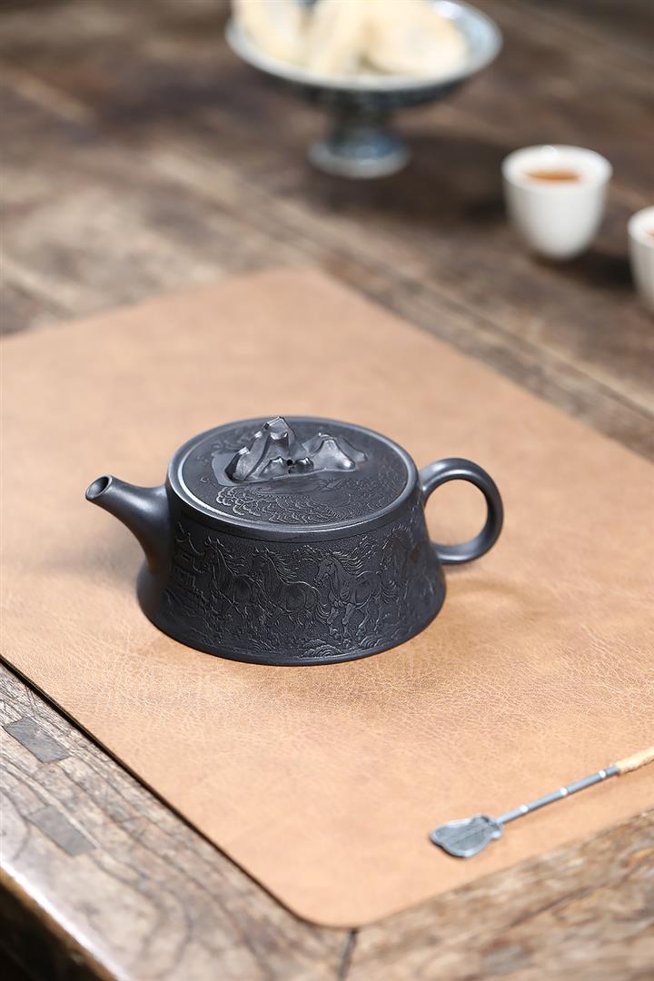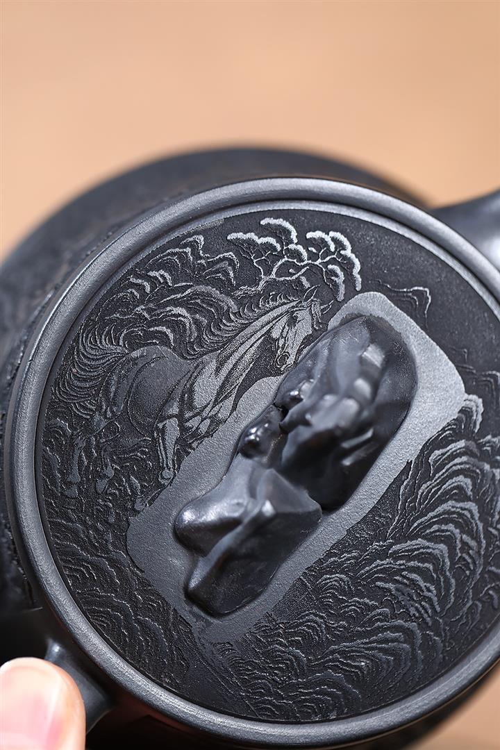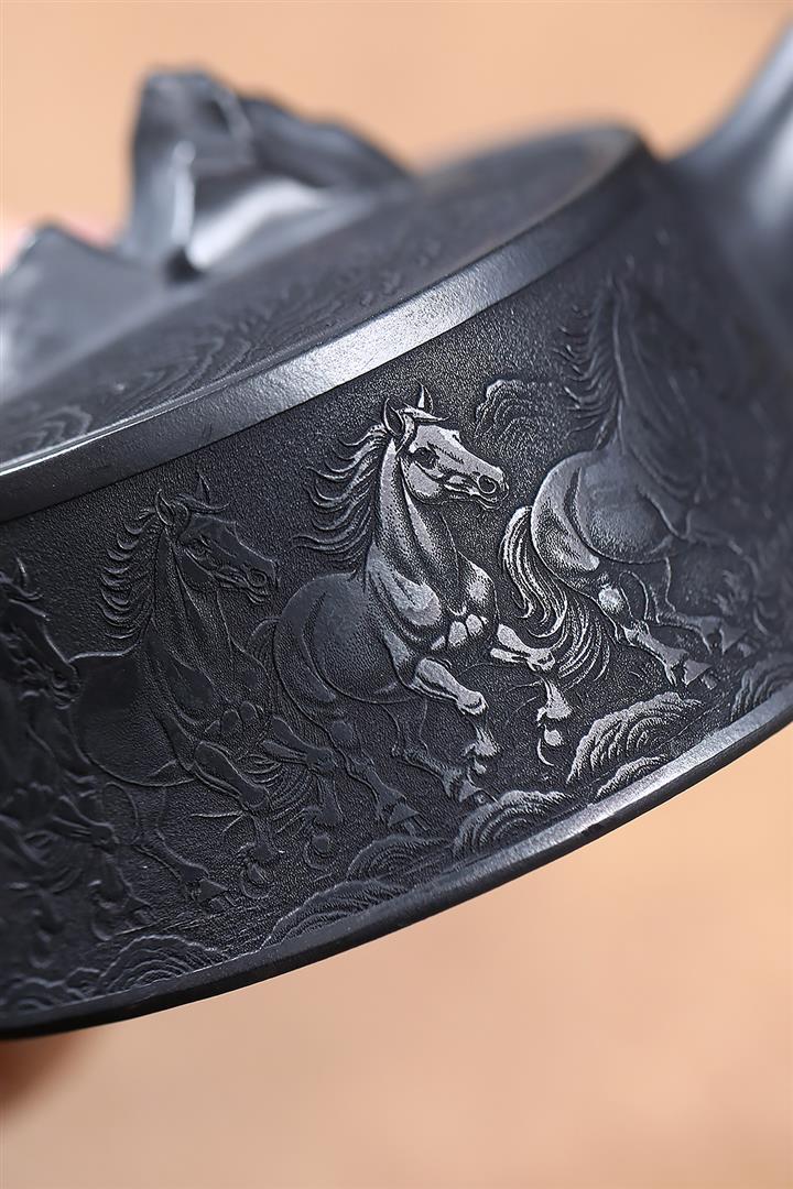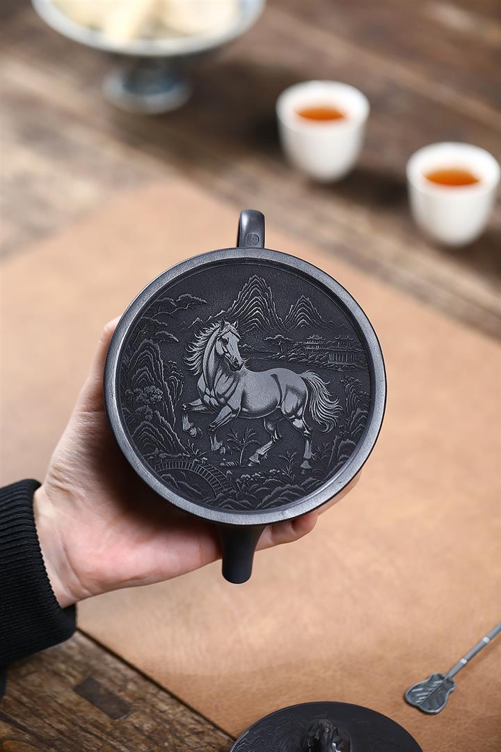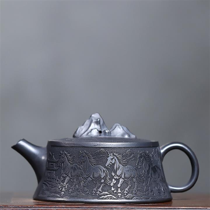 280cc原礦玄鐵石黃駿馬柱礎泡茶壺POT9361