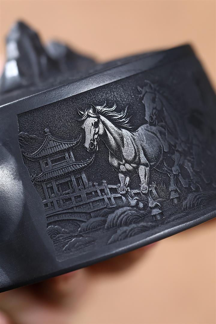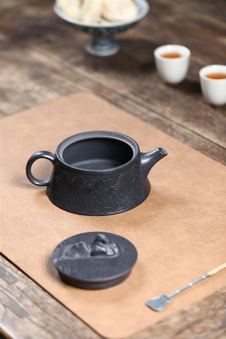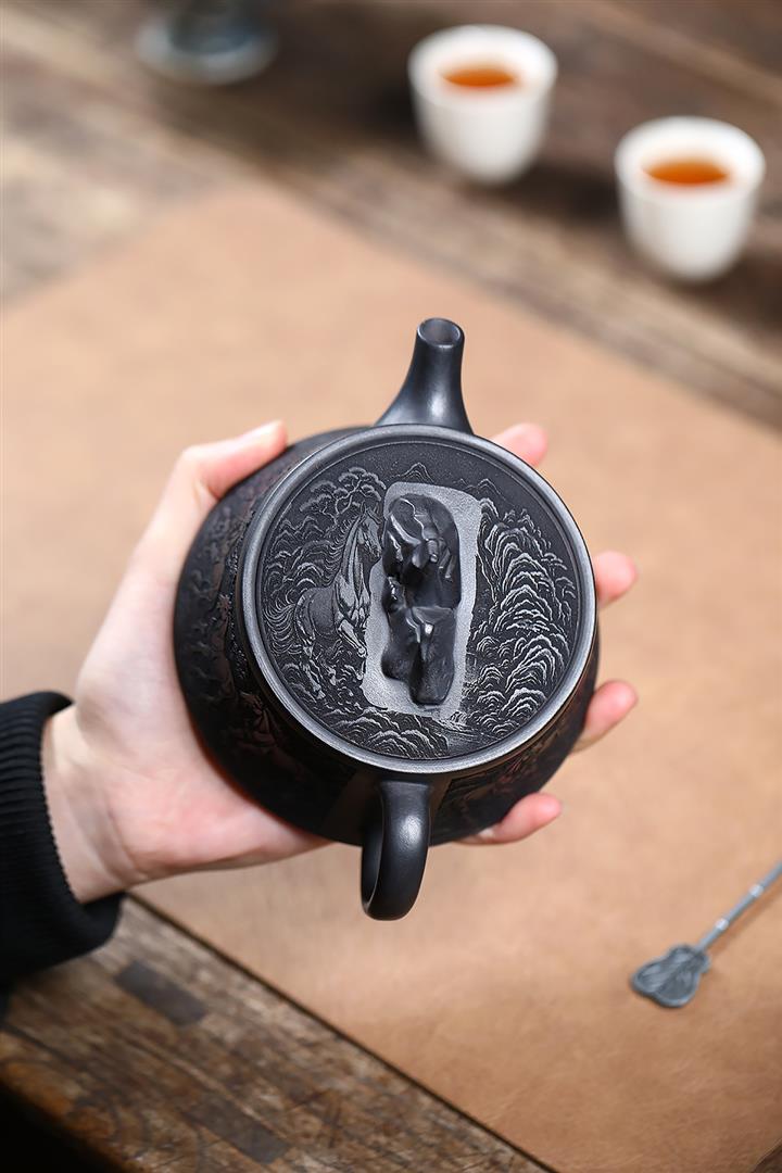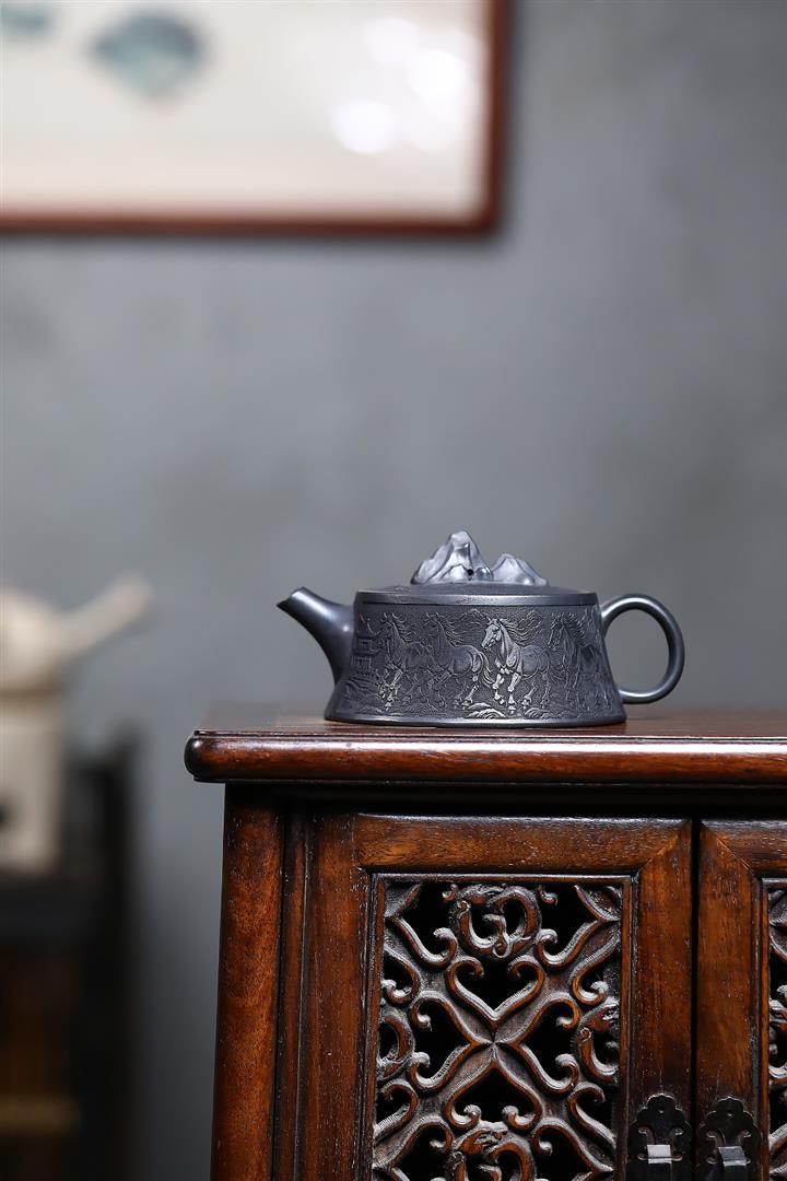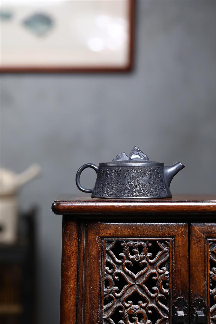 280cc原礦玄鐵石黃駿馬柱礎泡茶壺POT9361
