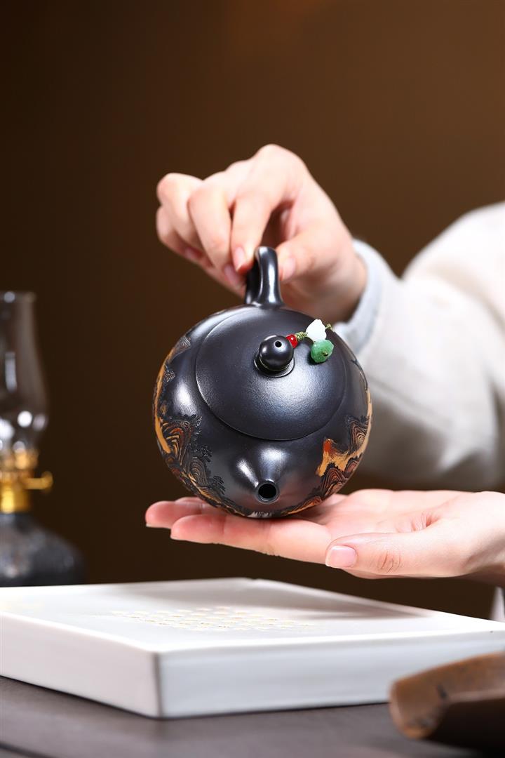 500cc原礦玄鐵石黃福象掇球泡茶壺POT9169