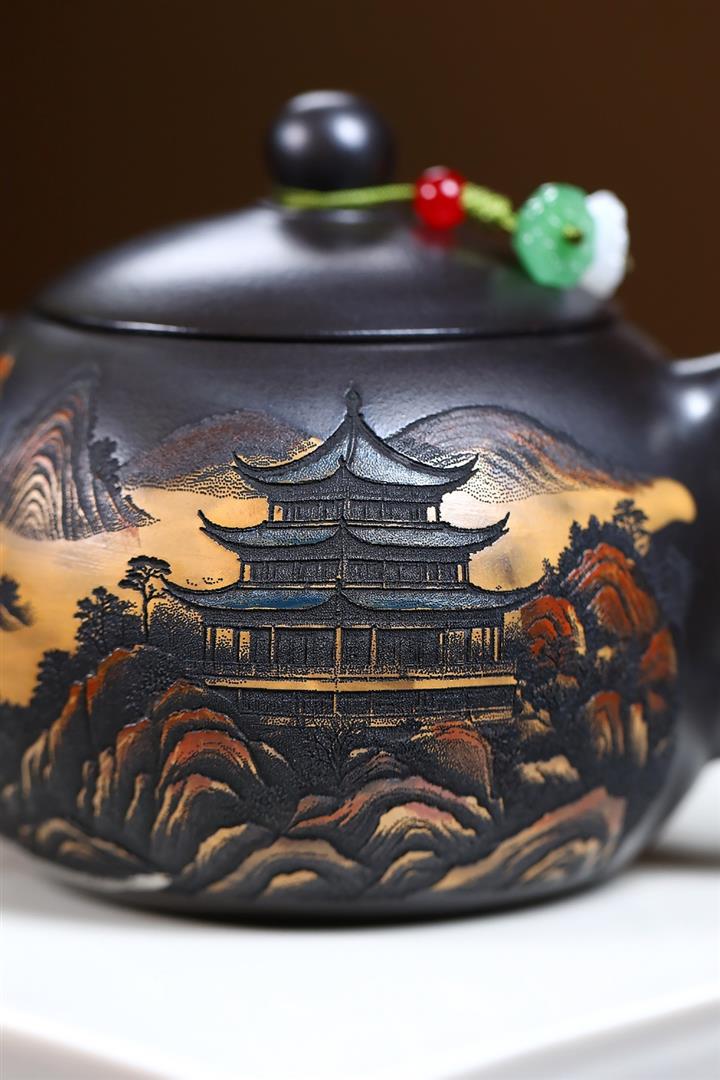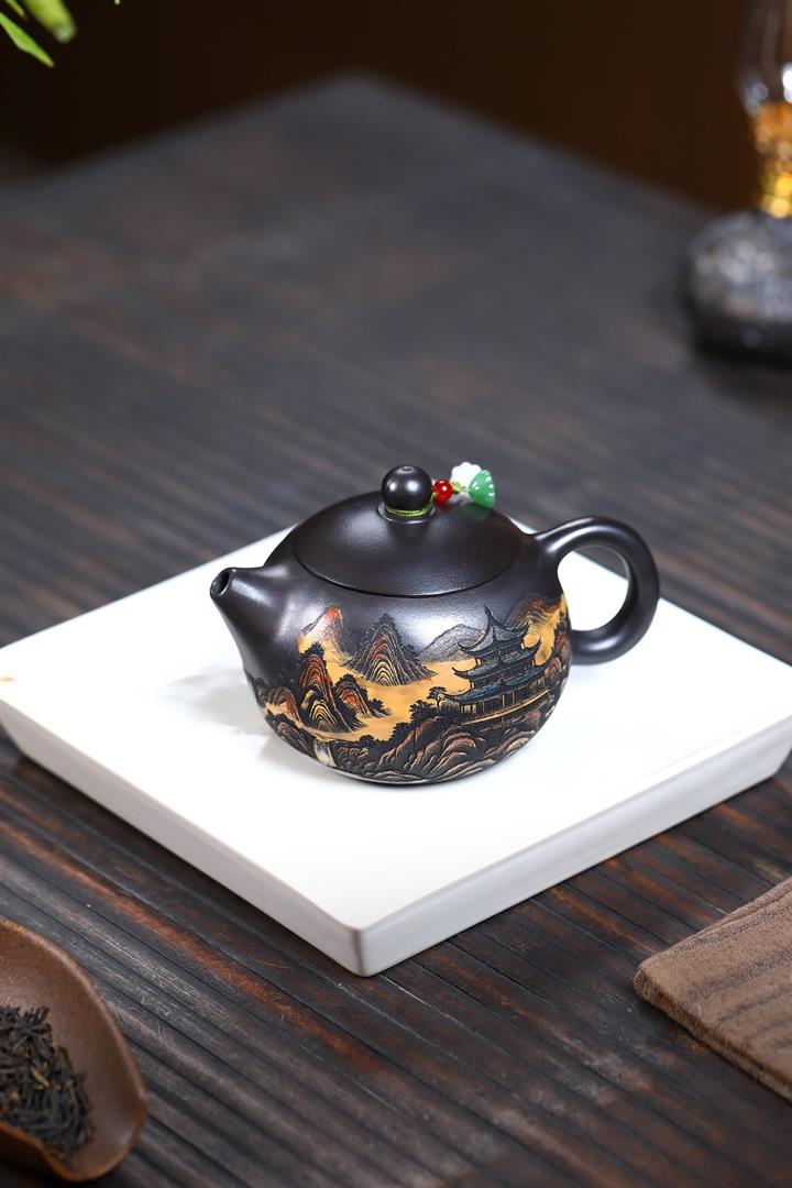 170cc原礦綠泥描金寒江泡茶壺POT9166