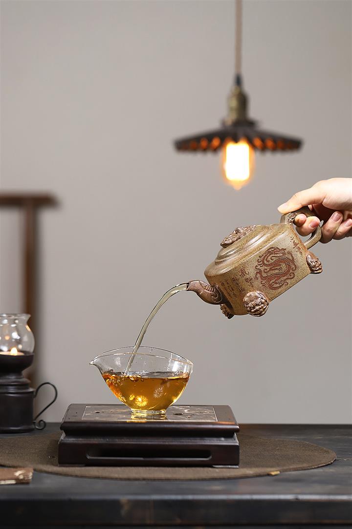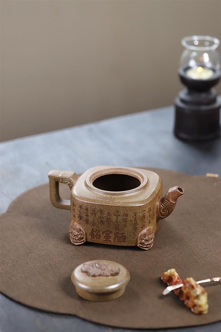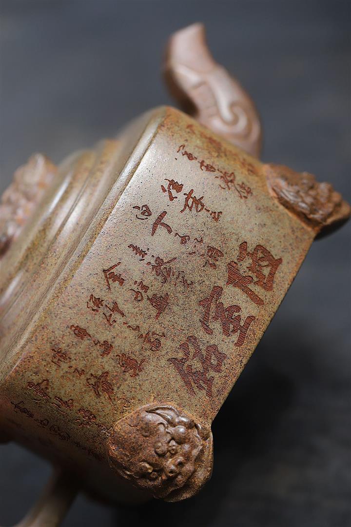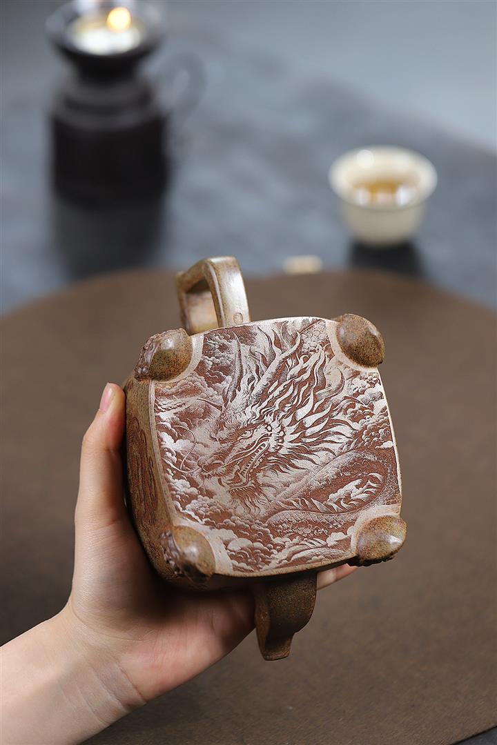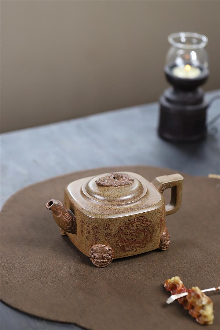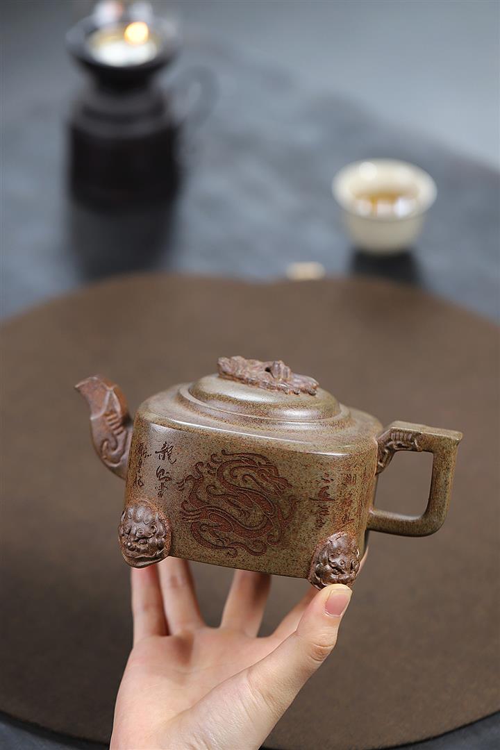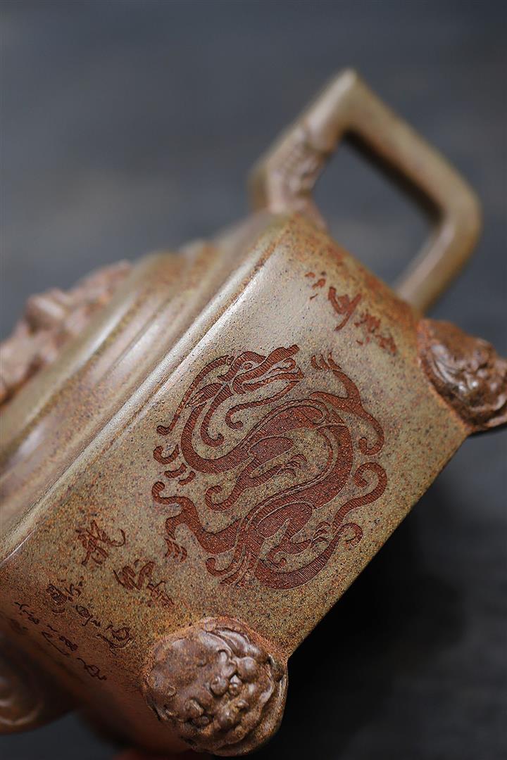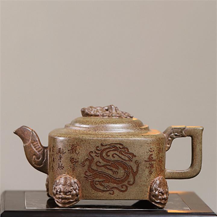 400cc原礦紫砂特高溫柴燒四足龍尊茶壺POT9365