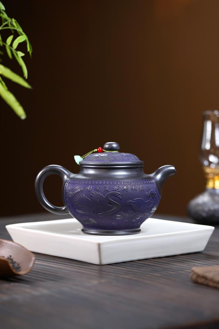 原礦陳腐紫泥刻繪玉碗漢瓦壺POT6695