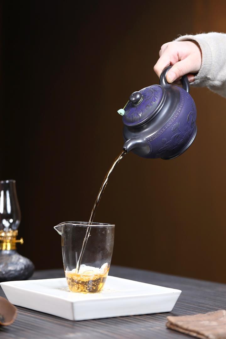【泥料特點】砂土氣重,似淳實農民,日久使用,漸露鋒芒,養成變化,溫潤莊重。紫砂是壹種雙重氣孔結構的多孔性材質,氣孔微細,密度高。用紫砂壺沏茶,不失原味,且香不渙散,得茶之真香真味。紫砂使用越久,壺身色澤越發光亮照人,氣韻溫雅。紫砂壺長久使用器身會因撫摸擦拭,變得越發溫潤光澤。