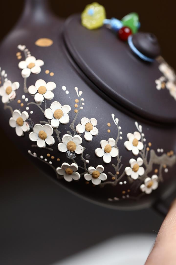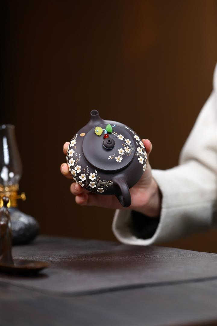 190cc原礦黑泥傲骨寒梅泡茶壺POT9378