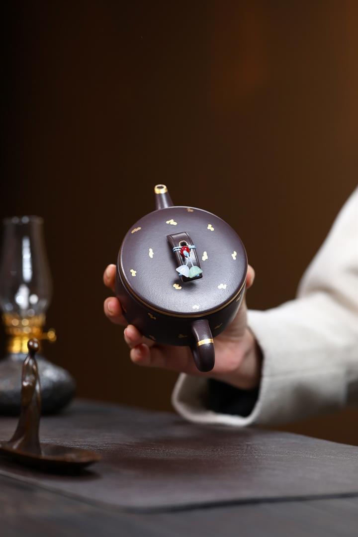 南瓜紫砂壺原礦段泥手工貼花紫砂禮品茶具pot3858