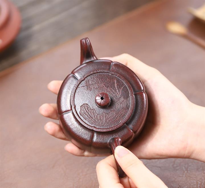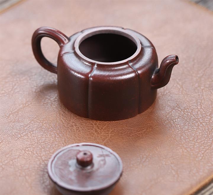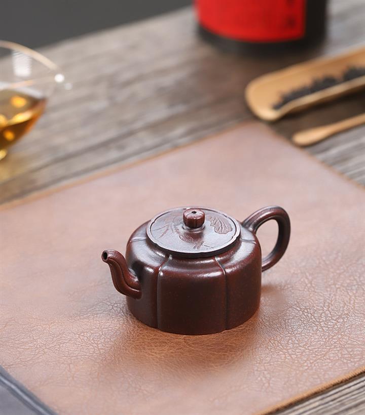 老紫泥紫砂手工如意水平茶壺 Pot3532