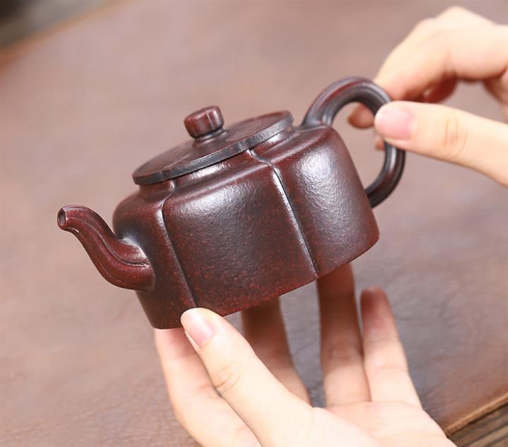 【泥料特點】砂土氣重,似淳實農民,日久使用,漸露鋒芒,養成變化,溫潤莊重。紫砂是壹種雙重氣孔結構的多孔性材質,氣孔微細,密度高。用紫砂壺沏茶,不失原味,且香不渙散,得茶之真香真味。紫砂使用越久,壺身色澤越發光亮照人,氣韻溫雅。紫砂壺長久使用器身會因撫摸擦拭,變得越發溫潤光澤。