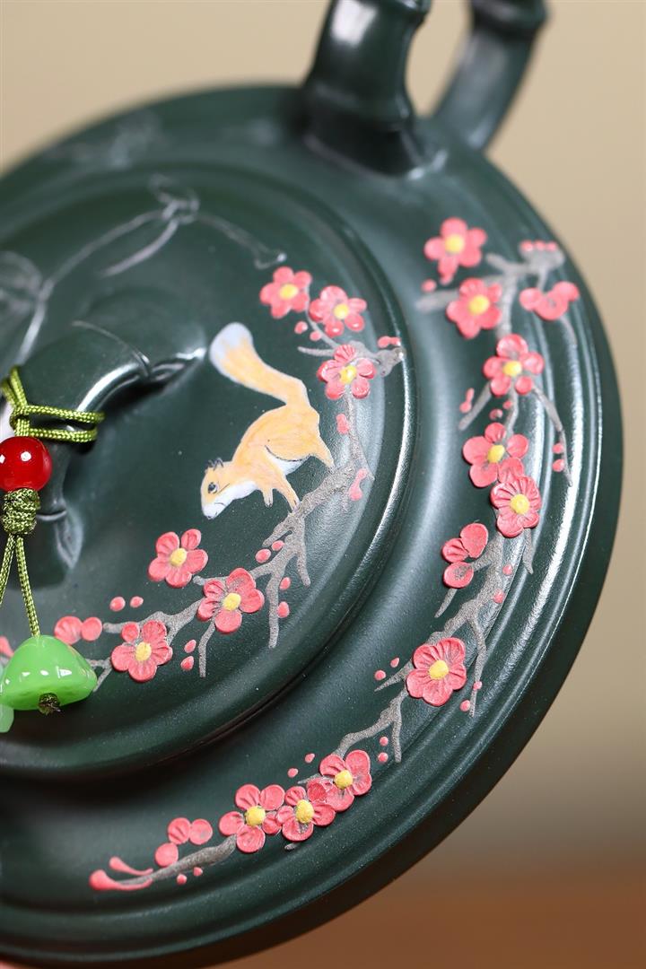 【泥料特點】砂土氣重,似淳實農民,日久使用,漸露鋒芒,養成變化,溫潤莊重。紫砂是壹種雙重氣孔結構的多孔性材質,氣孔微細,密度高。用紫砂壺沏茶,不失原味,且香不渙散,得茶之真香真味。紫砂使用越久,壺身色澤越發光亮照人,氣韻溫雅。紫砂壺長久使用器身會因撫摸擦拭,變得越發溫潤光澤。