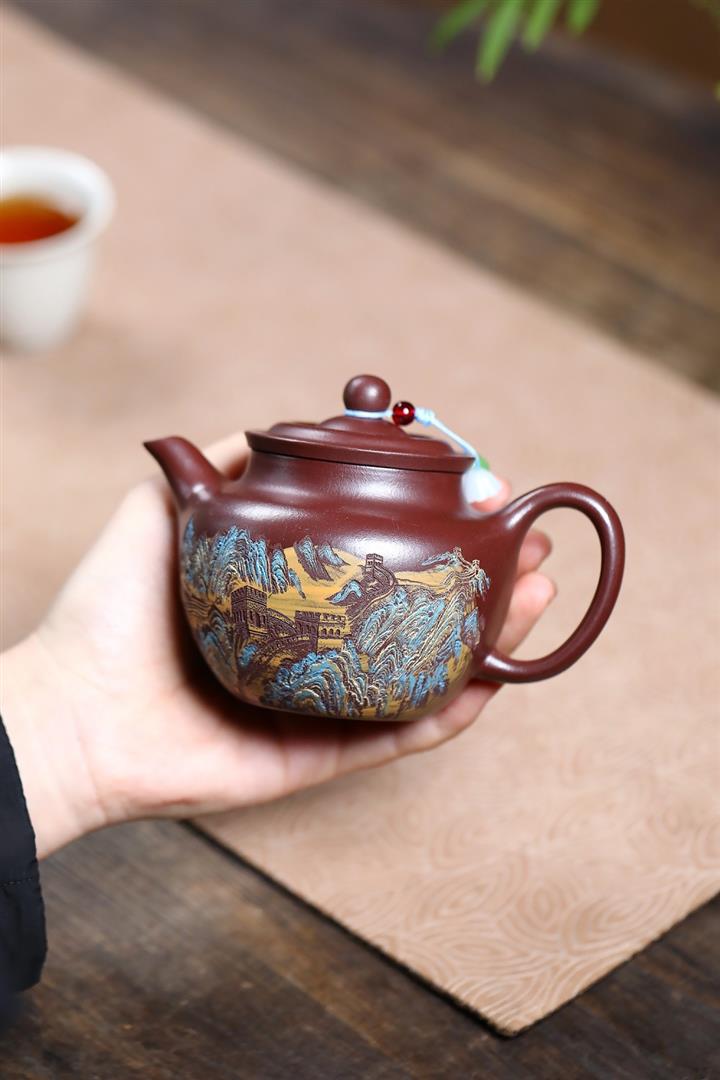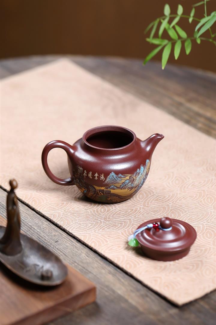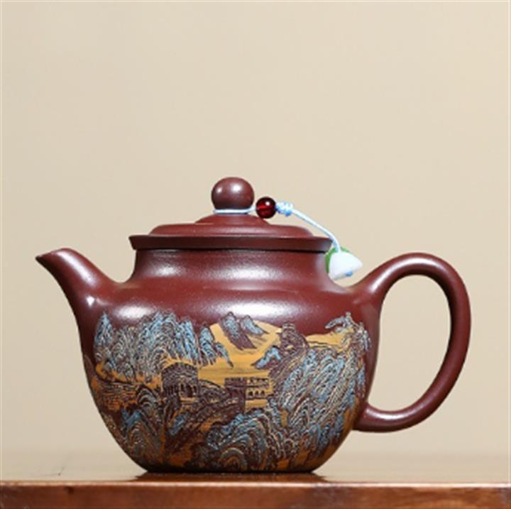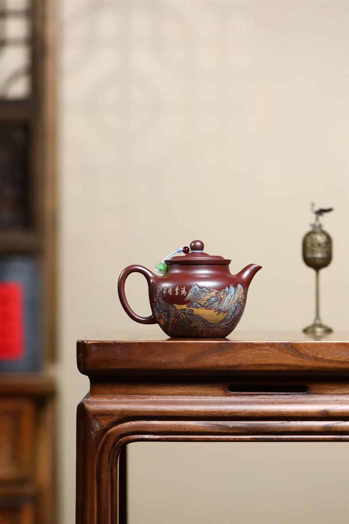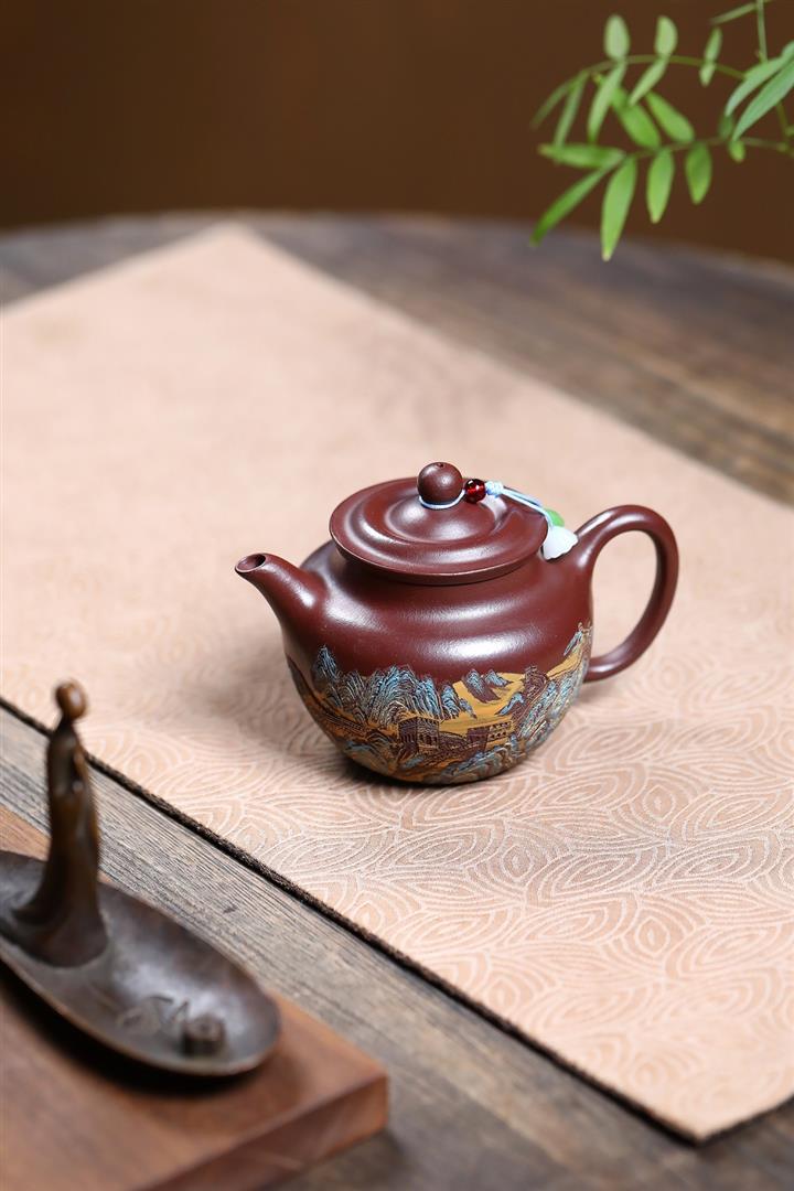 手工製原礦紫砂泥繪山水側把壺泡茶壺功夫茶具POT3915