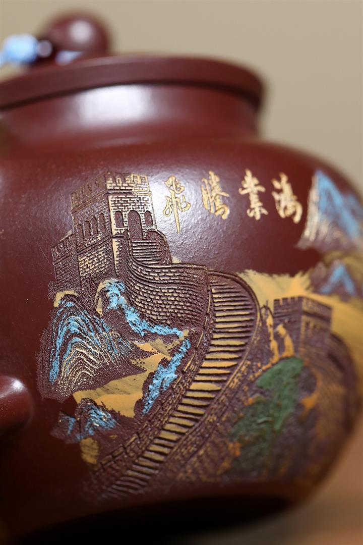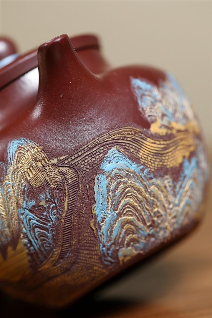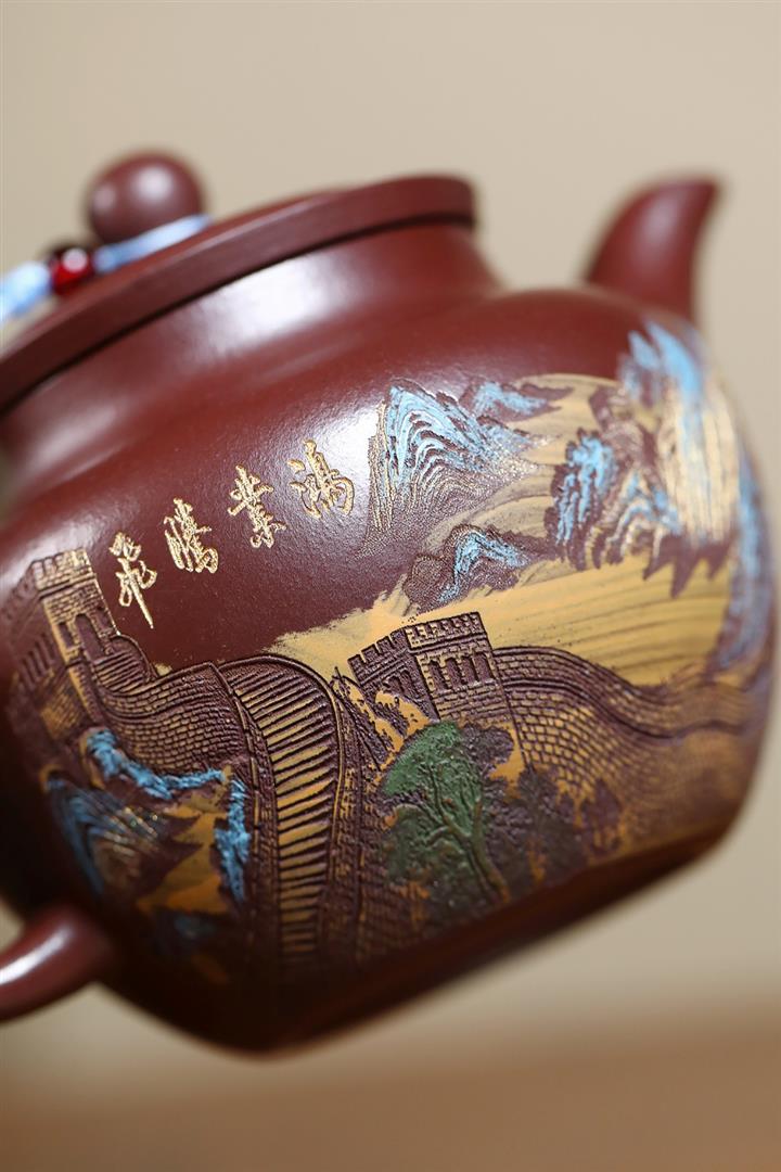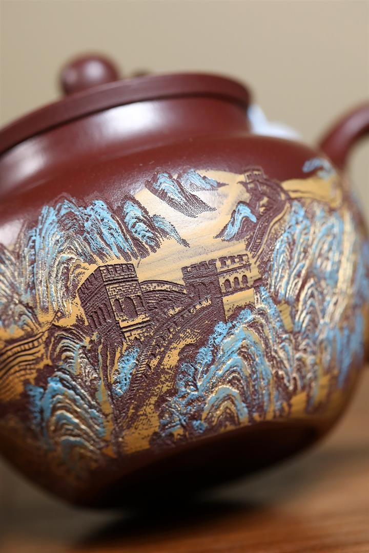 手工製原礦紫砂泥繪山水側把壺泡茶壺功夫茶具POT3915