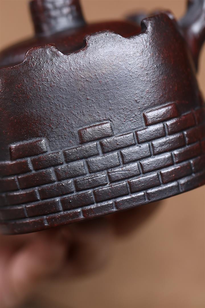 漢瓦原礦豆沙青琢砂陽刻紫砂壺工堂pot3785