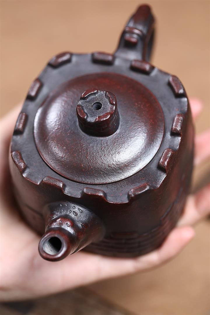 竹簡原礦豆沙青名家手刻宜興紫砂壺工堂pot3778