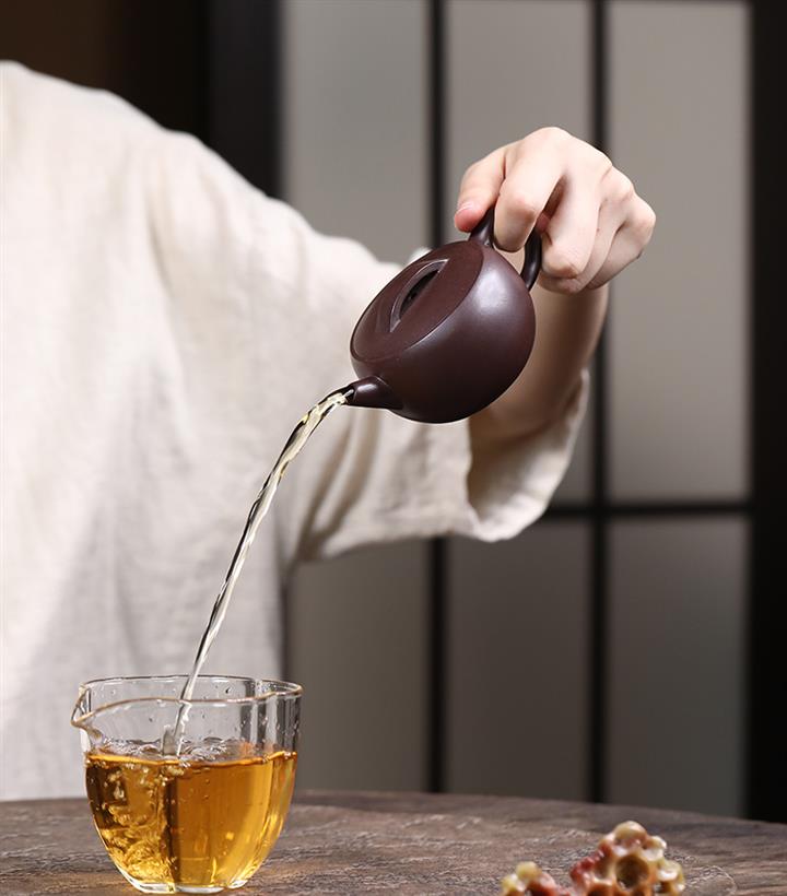 【泥料特點】砂土氣重,似淳實農民,日久使用,漸露鋒芒,養成變化,溫潤莊重。紫砂是壹種雙重氣孔結構的多孔性材質,氣孔微細,密度高。用紫砂壺沏茶,不失原味,且香不渙散,得茶之真香真味。紫砂使用越久,壺身色澤越發光亮照人,氣韻溫雅。紫砂壺長久使用器身會因撫摸擦拭,變得越發溫潤光澤。
