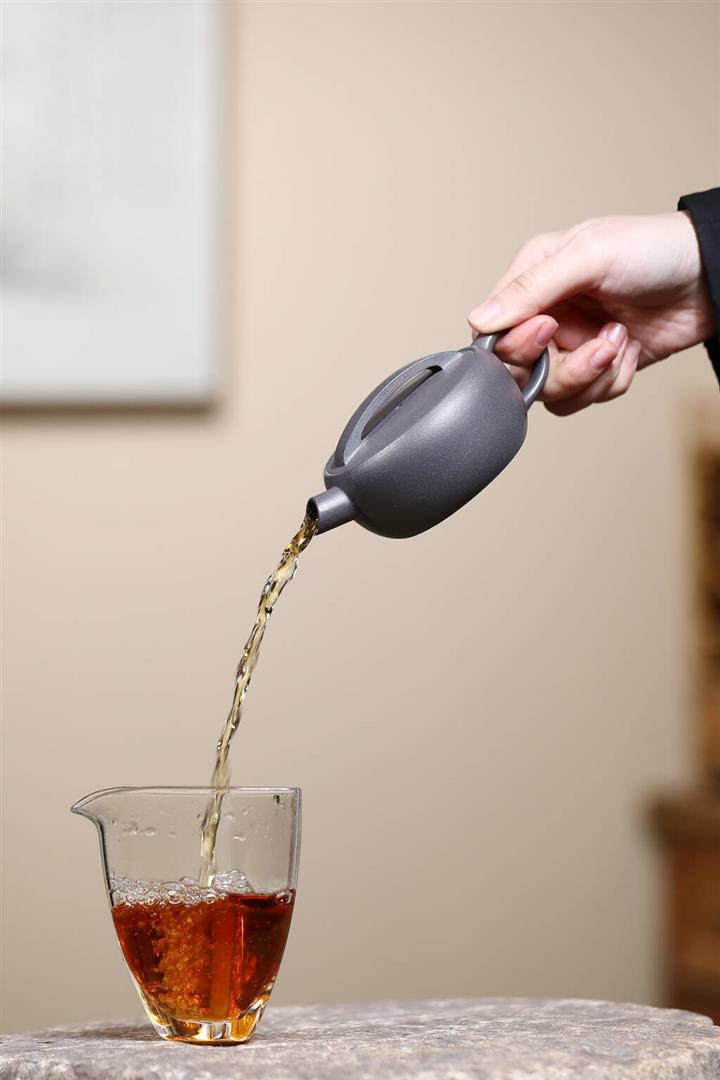 【泥料特點】砂土氣重,似淳實農民,日久使用,漸露鋒芒,養成變化,溫潤莊重。紫砂是壹種雙重氣孔結構的多孔性材質,氣孔微細,密度高。用紫砂壺沏茶,不失原味,且香不渙散,得茶之真香真味。紫砂使用越久,壺身色澤越發光亮照人,氣韻溫雅。紫砂壺長久使用器身會因撫摸擦拭,變得越發溫潤光澤。