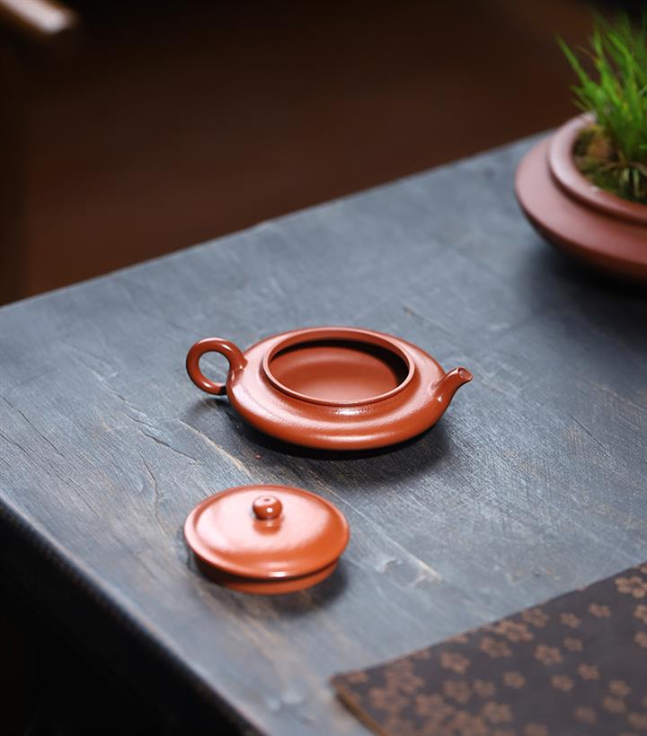 70cc原礦朱泥虛扁小茶壺泡茶壺POT9458