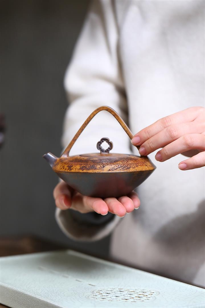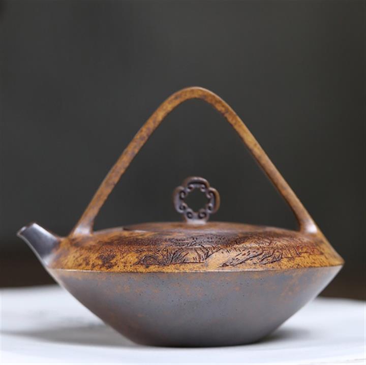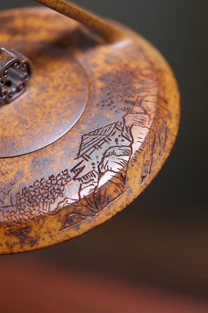 220cc龍窯柴燒龍骨金砂佛燈提梁泡茶壺POT9501