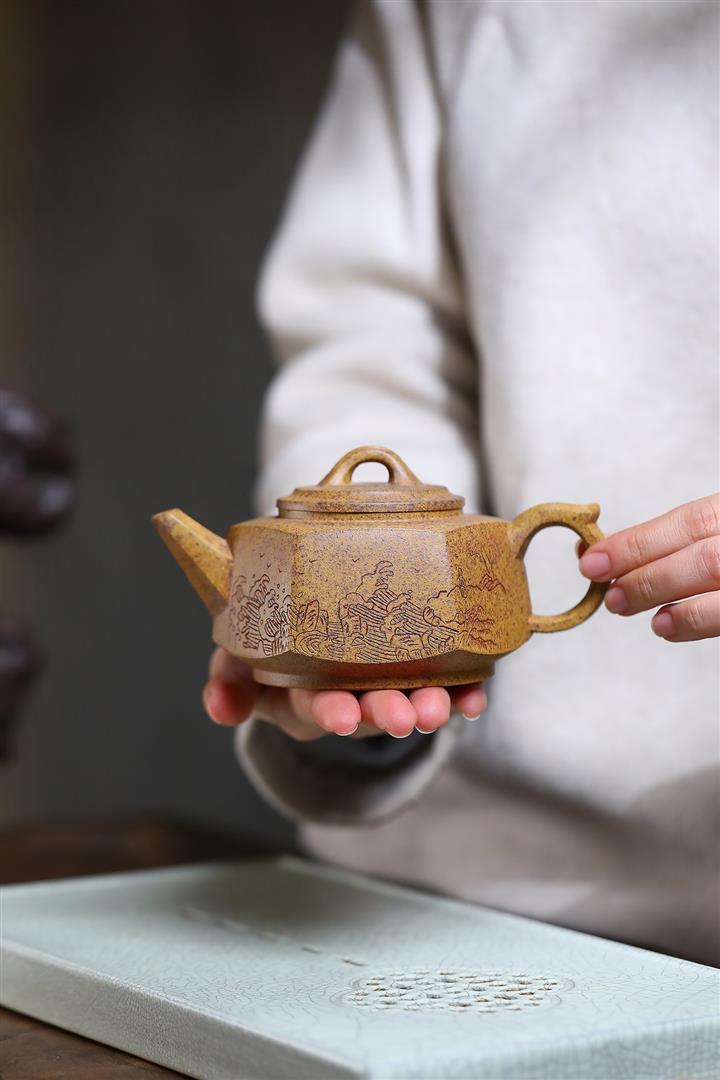 原礦紅降坡彩繪山水三足鼎立茶壺POT7805