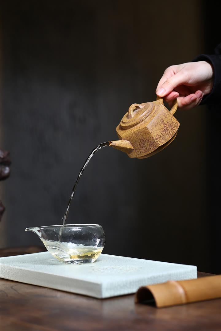 【泥料特點】砂土氣重,似淳實農民,日久使用,漸露鋒芒,養成變化,溫潤莊重。紫砂是壹種雙重氣孔結構的多孔性材質,氣孔微細,密度高。用紫砂壺沏茶,不失原味,且香不渙散,得茶之真香真味。紫砂使用越久,壺身色澤越發光亮照人,氣韻溫雅。紫砂壺長久使用器身會因撫摸擦拭,變得越發溫潤光澤。