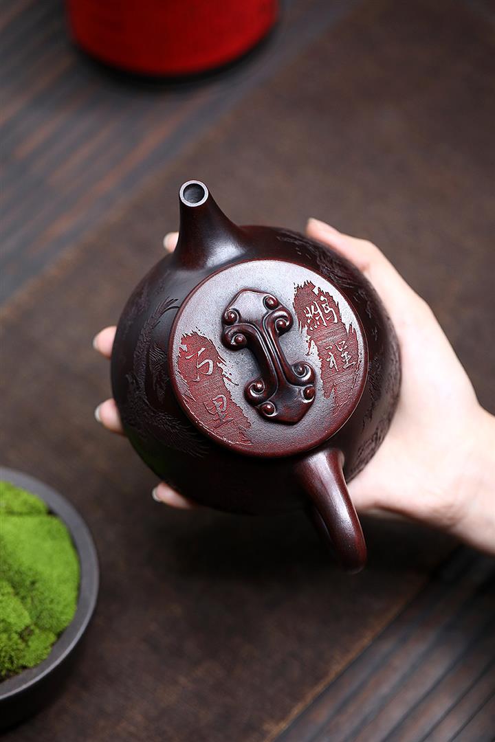 450cc原礦紫泥滿刻大德鐘壺POT8116