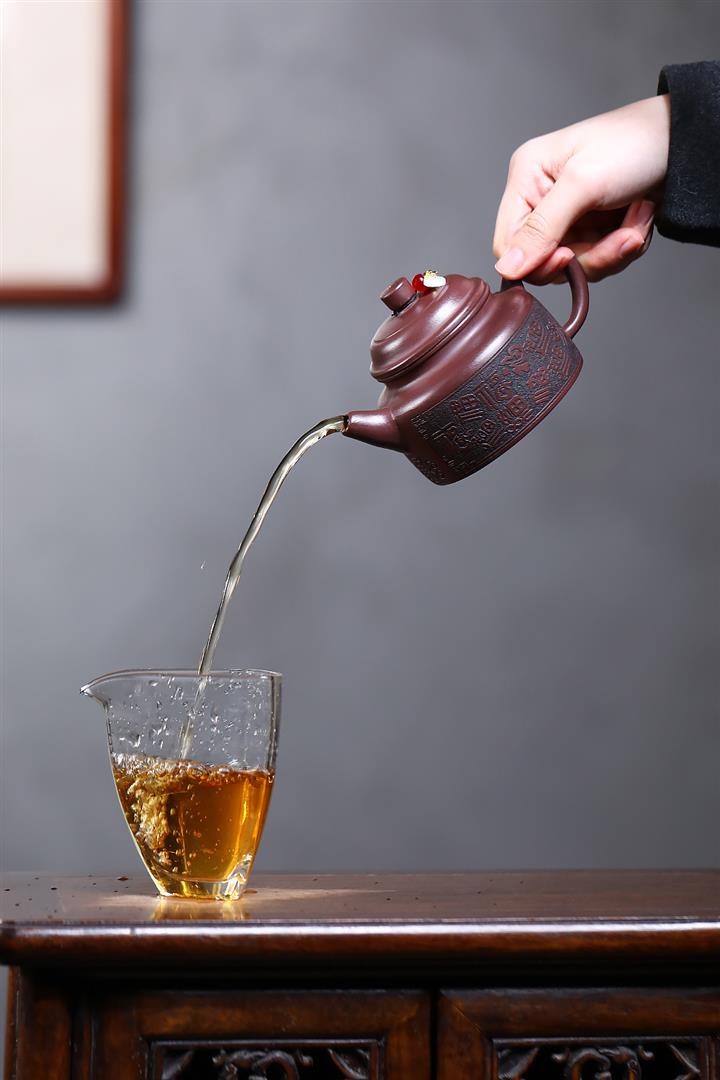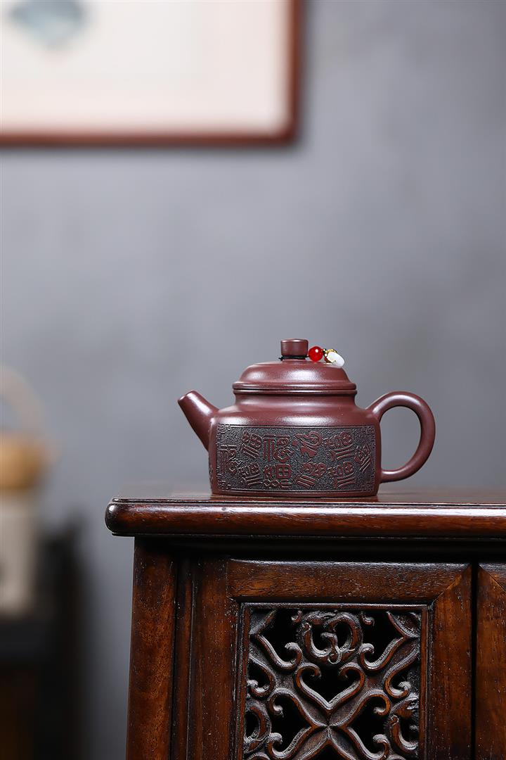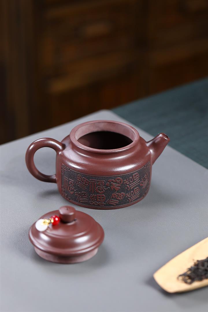 230cc原礦紫泥刻繪百福德鐘泡茶壺POT9529
