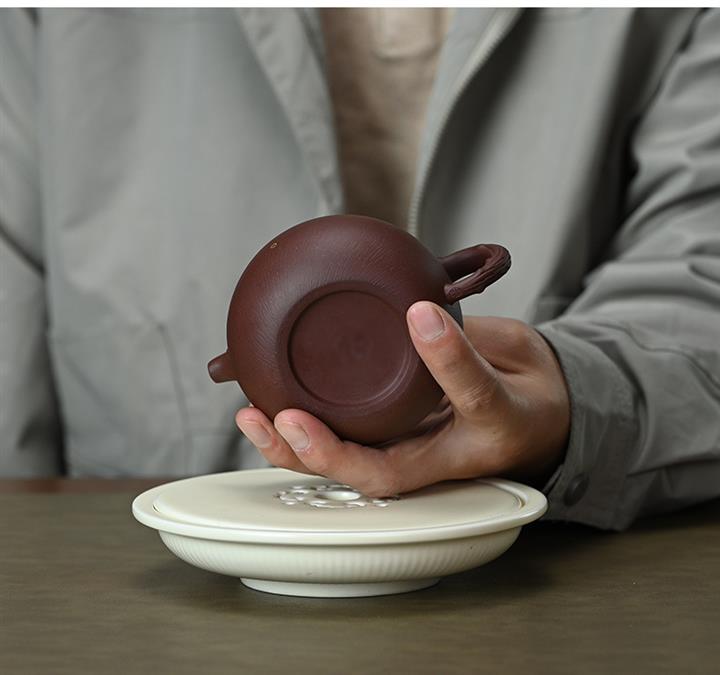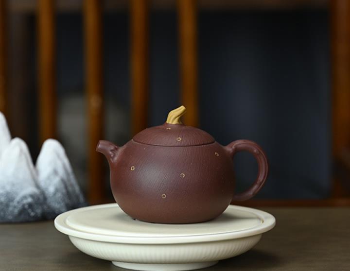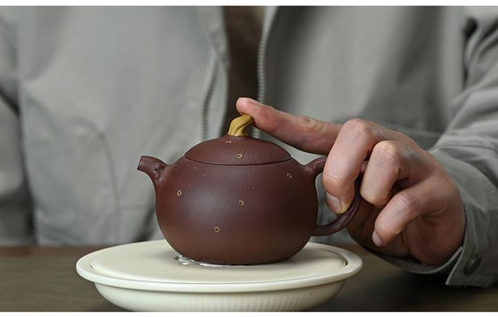 【泥料特點】砂土氣重,似淳實農民,日久使用,漸露鋒芒,養成變化,溫潤莊重。紫砂是壹種雙重氣孔結構的多孔性材質,氣孔微細,密度高。用紫砂壺沏茶,不失原味,且香不渙散,得茶之真香真味。紫砂使用越久,壺身色澤越發光亮照人,氣韻溫雅。紫砂壺長久使用器身會因撫摸擦拭,變得越發溫潤光澤。