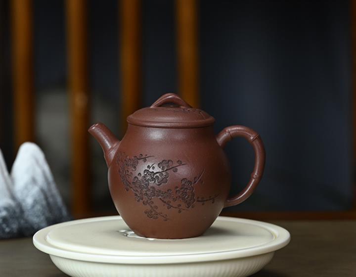 230cc原礦老紫泥梅花暗香秋韻泡茶壺POT9547