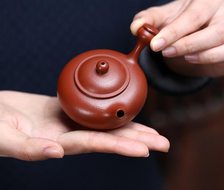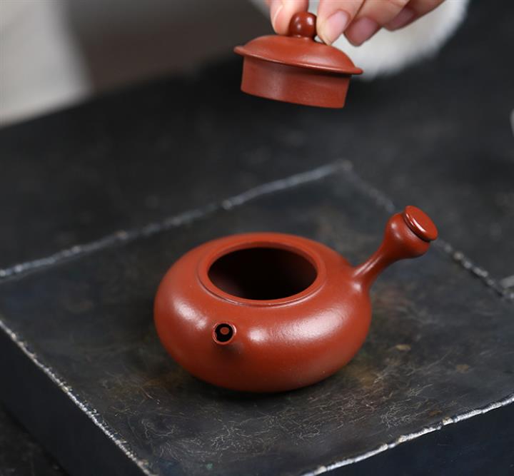 70cc/90cc原礦朱泥/君子蘭側把唐羽泡茶壺POT9587