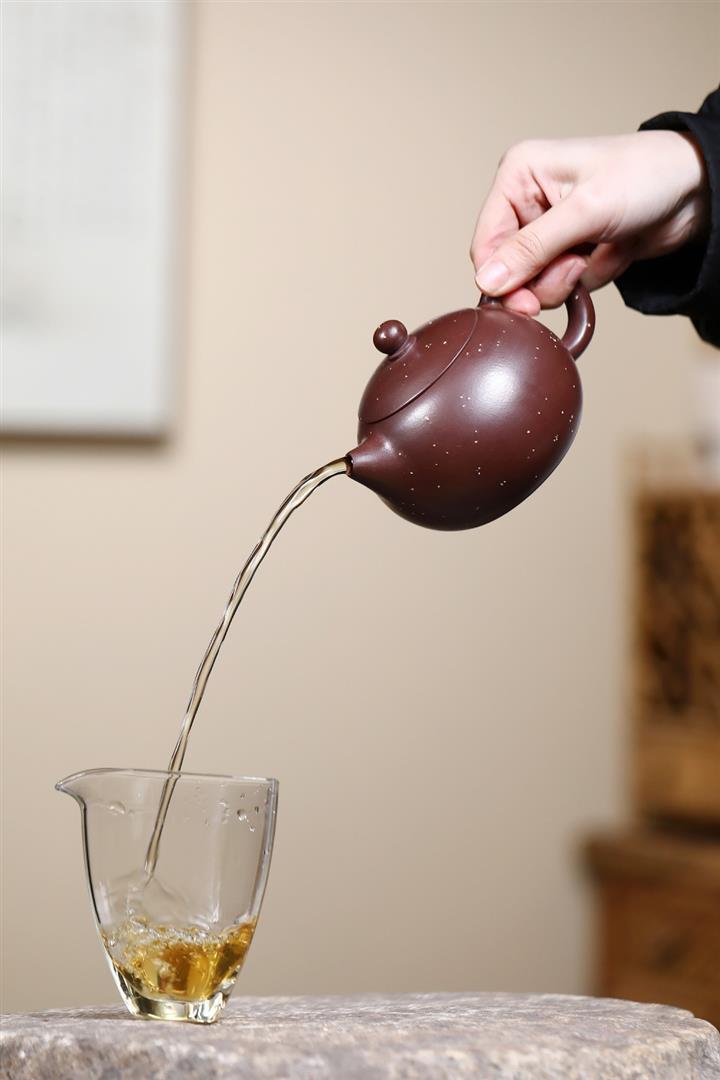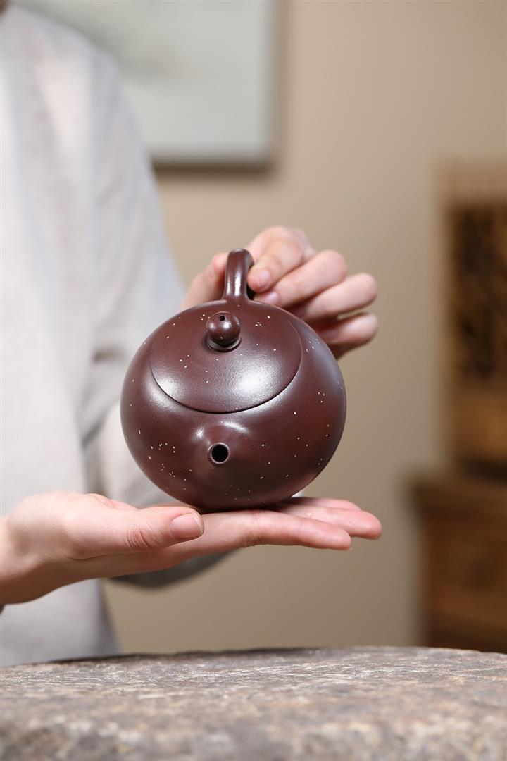 【泥料特點】砂土氣重,似淳實農民,日久使用,漸露鋒芒,養成變化,溫潤莊重。紫砂是壹種雙重氣孔結構的多孔性材質,氣孔微細,密度高。用紫砂壺沏茶,不失原味,且香不渙散,得茶之真香真味。紫砂使用越久,壺身色澤越發光亮照人,氣韻溫雅。紫砂壺長久使用器身會因撫摸擦拭,變得越發溫潤光澤。