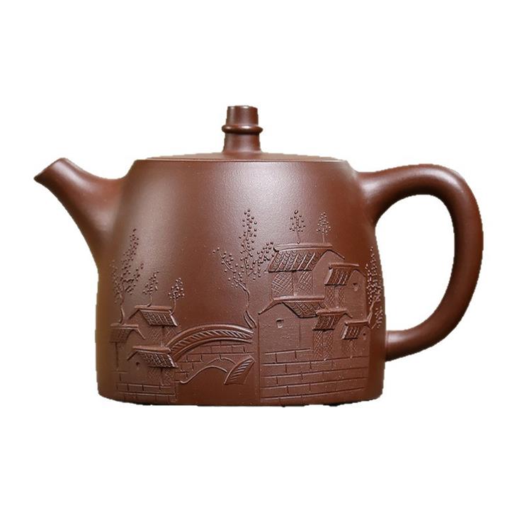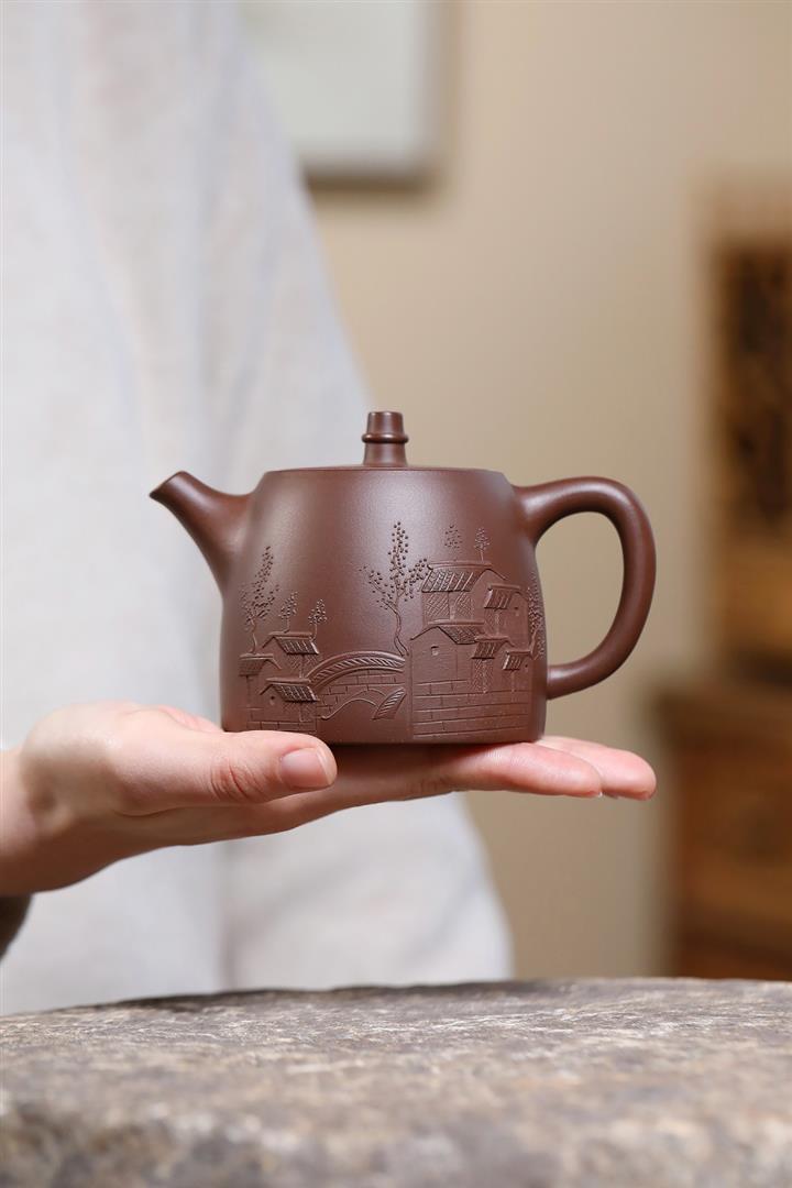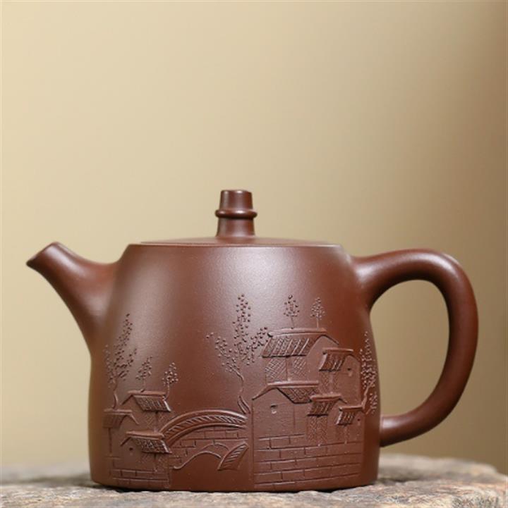 410cc原礦石黃泥彩刻蓬萊勝景茶壺POT8988