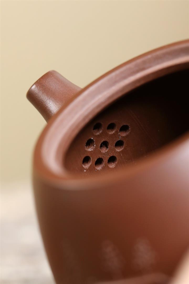 【泥料特點】砂土氣重,似淳實農民,日久使用,漸露鋒芒,養成變化,溫潤莊重。紫砂是壹種雙重氣孔結構的多孔性材質,氣孔微細,密度高。用紫砂壺沏茶,不失原味,且香不渙散,得茶之真香真味。紫砂使用越久,壺身色澤越發光亮照人,氣韻溫雅。紫砂壺長久使用器身會因撫摸擦拭,變得越發溫潤光澤。