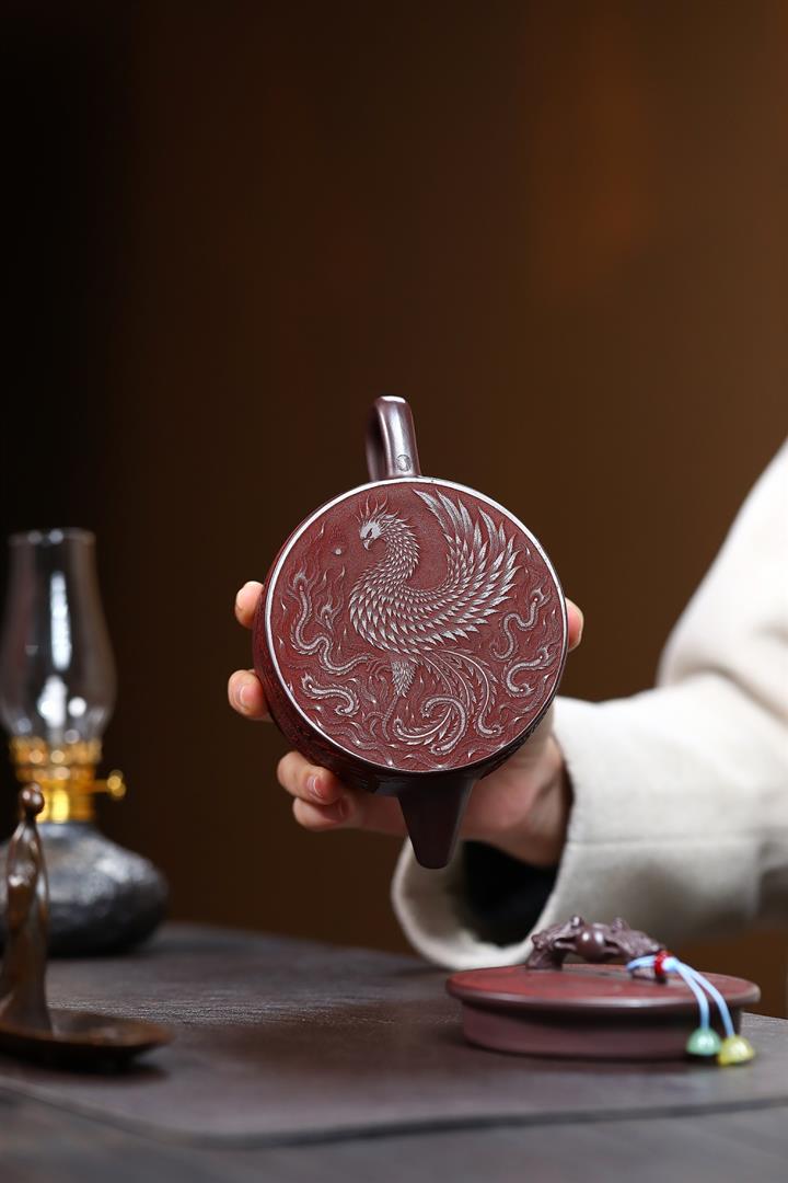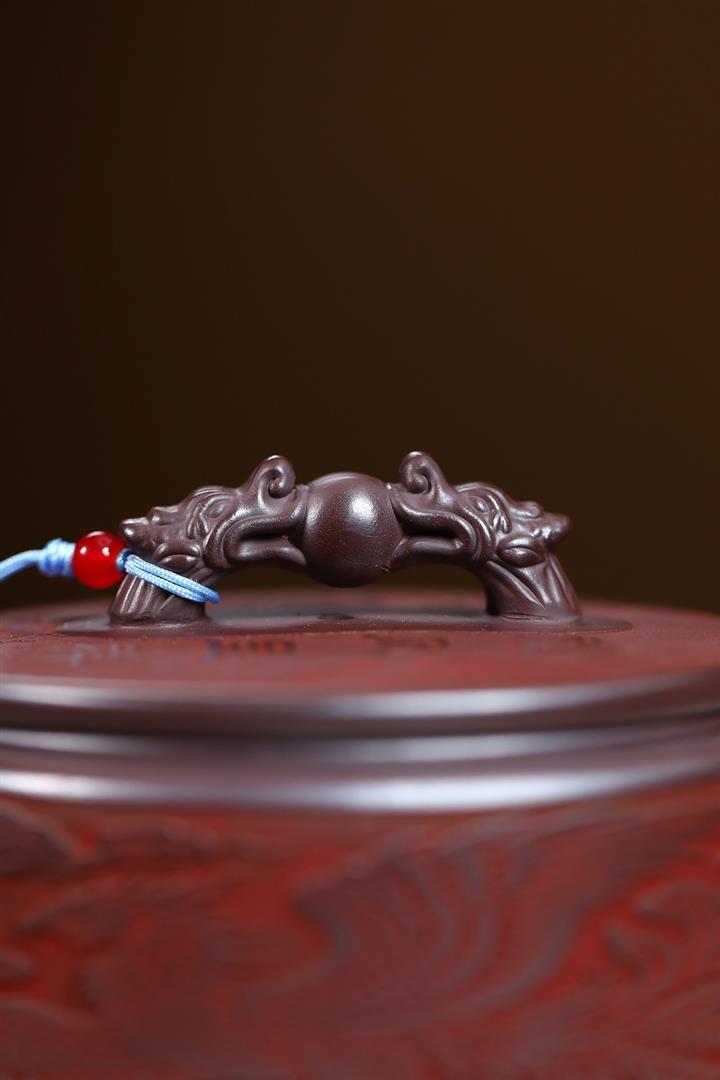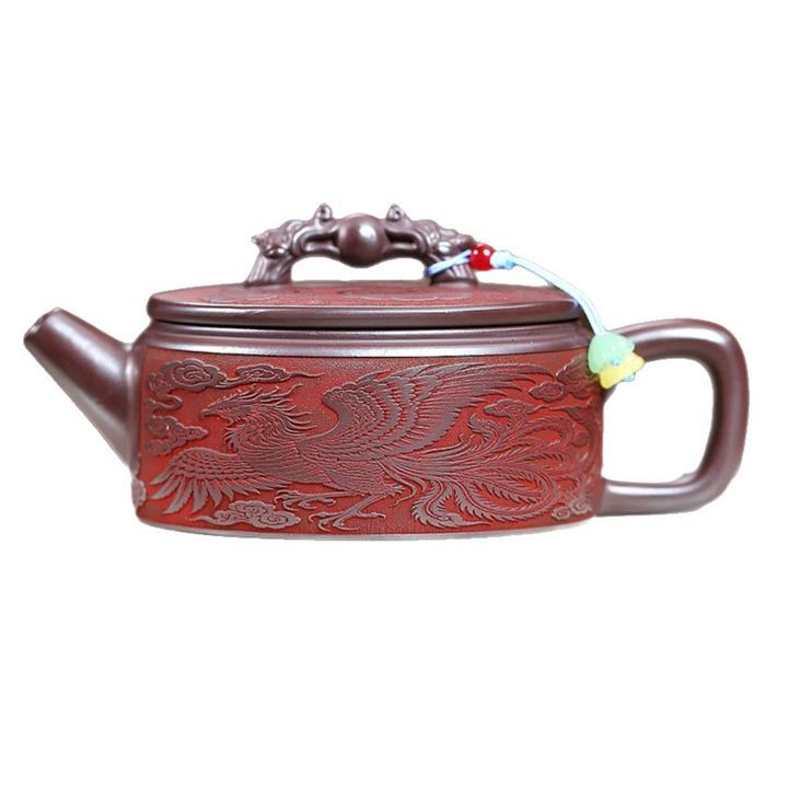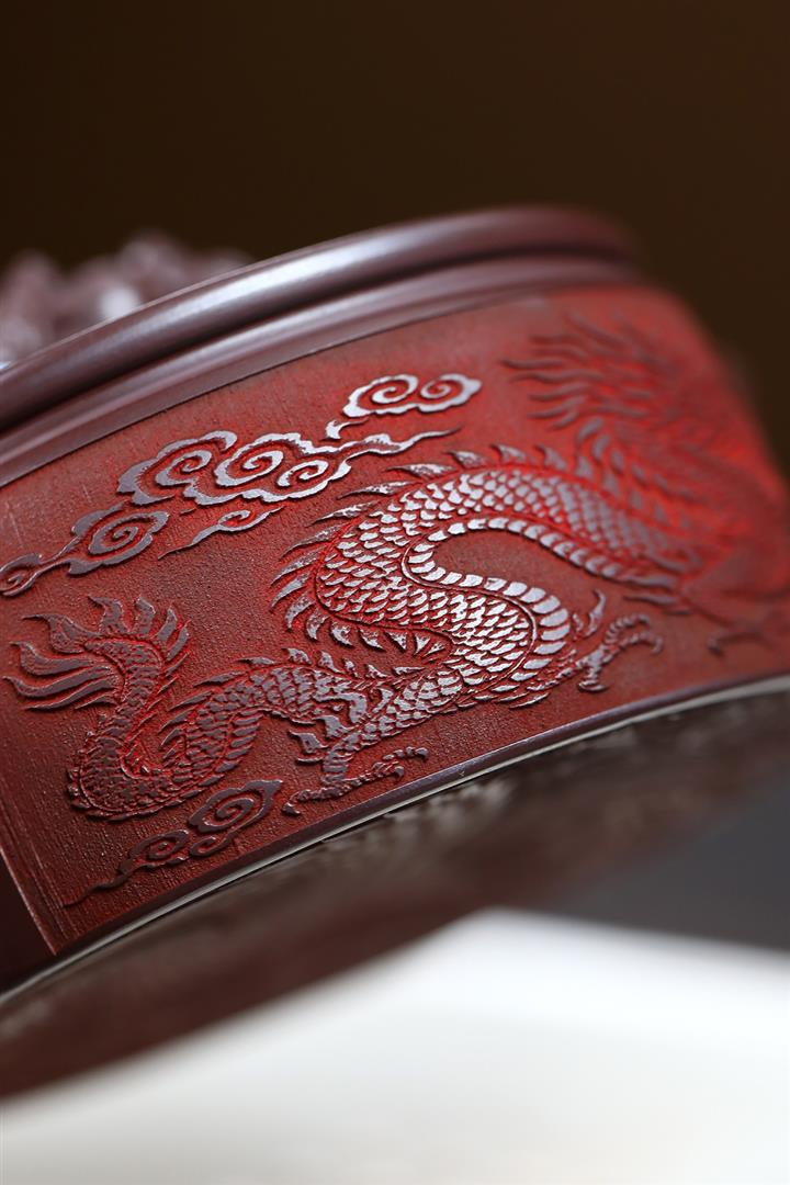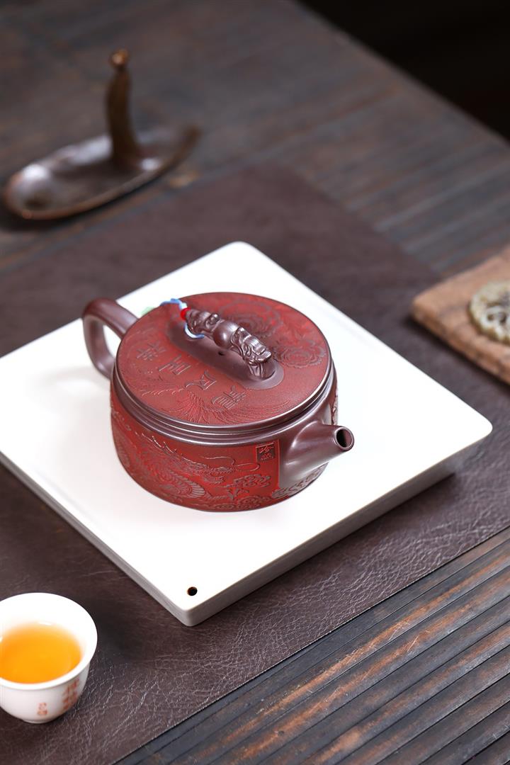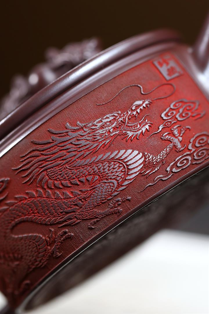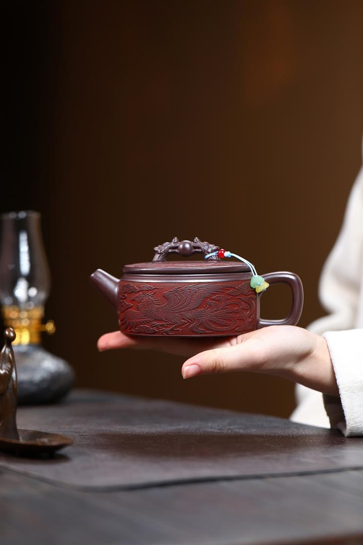 280cc原礦石紅泥龍鳳呈祥漢瓦茶壺POT9594