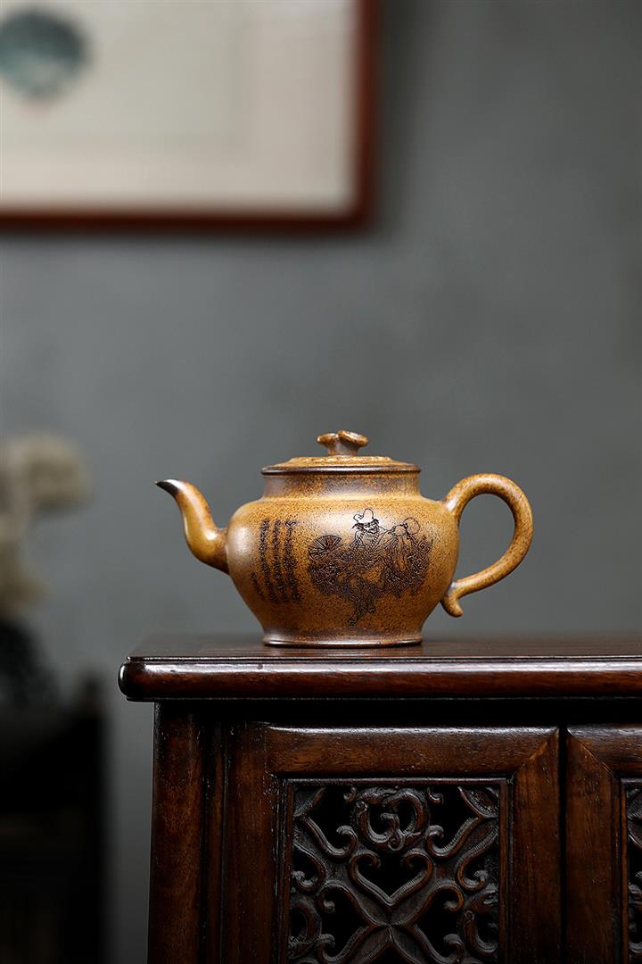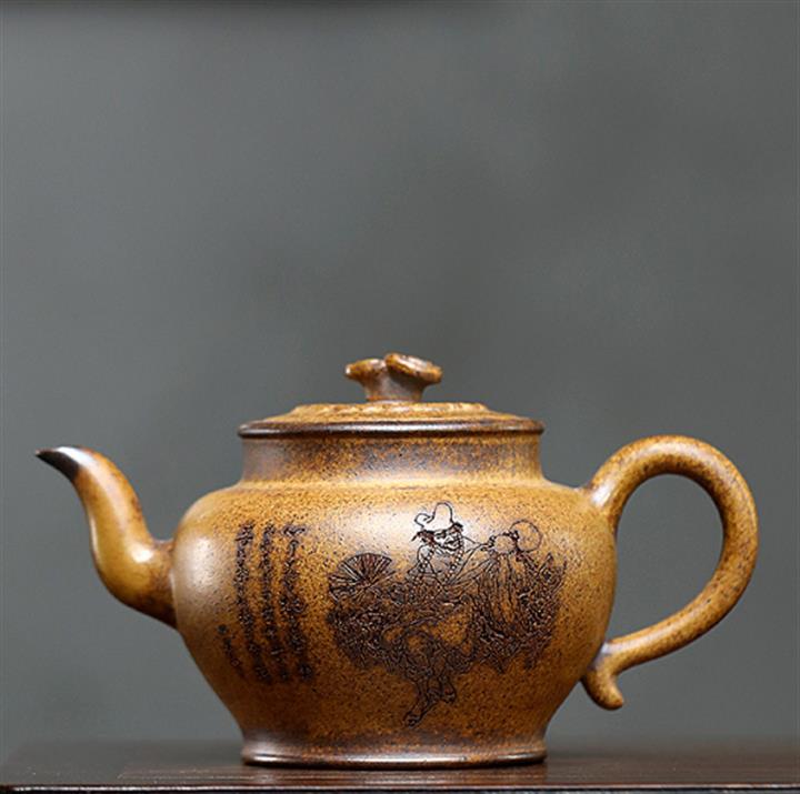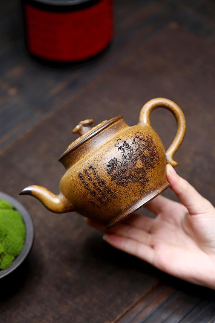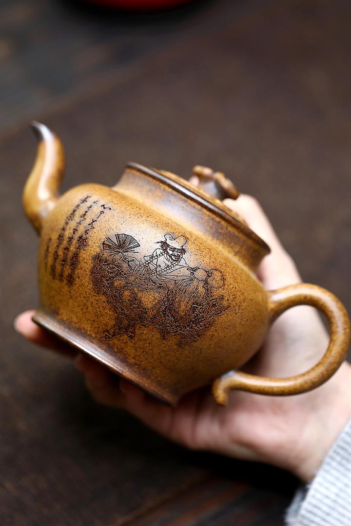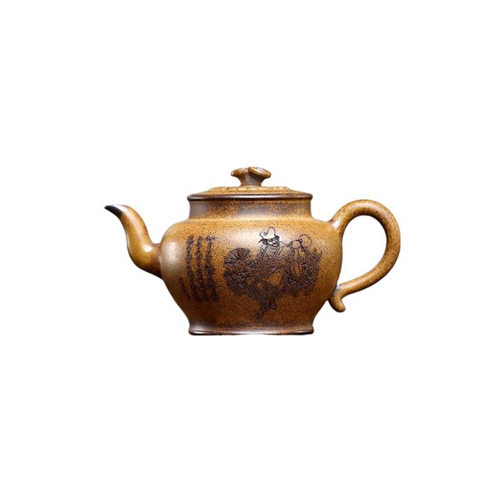 原礦降坡泥刻繪筋紋荷趣茶壺POT7748
